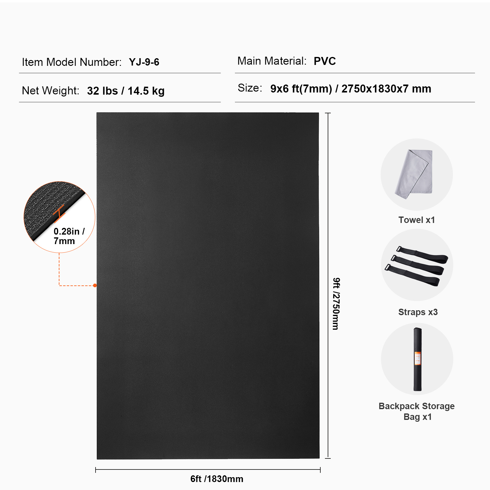 Large Yoga Mat 6/7/8/9/10/12 ft Workout Mats for Home Gym Flooring Black