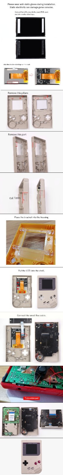 как выглядит Full Size IPS V5 Backlight IPS LCD For Game Boy DMG GB DMG and 3D Bracket фото
