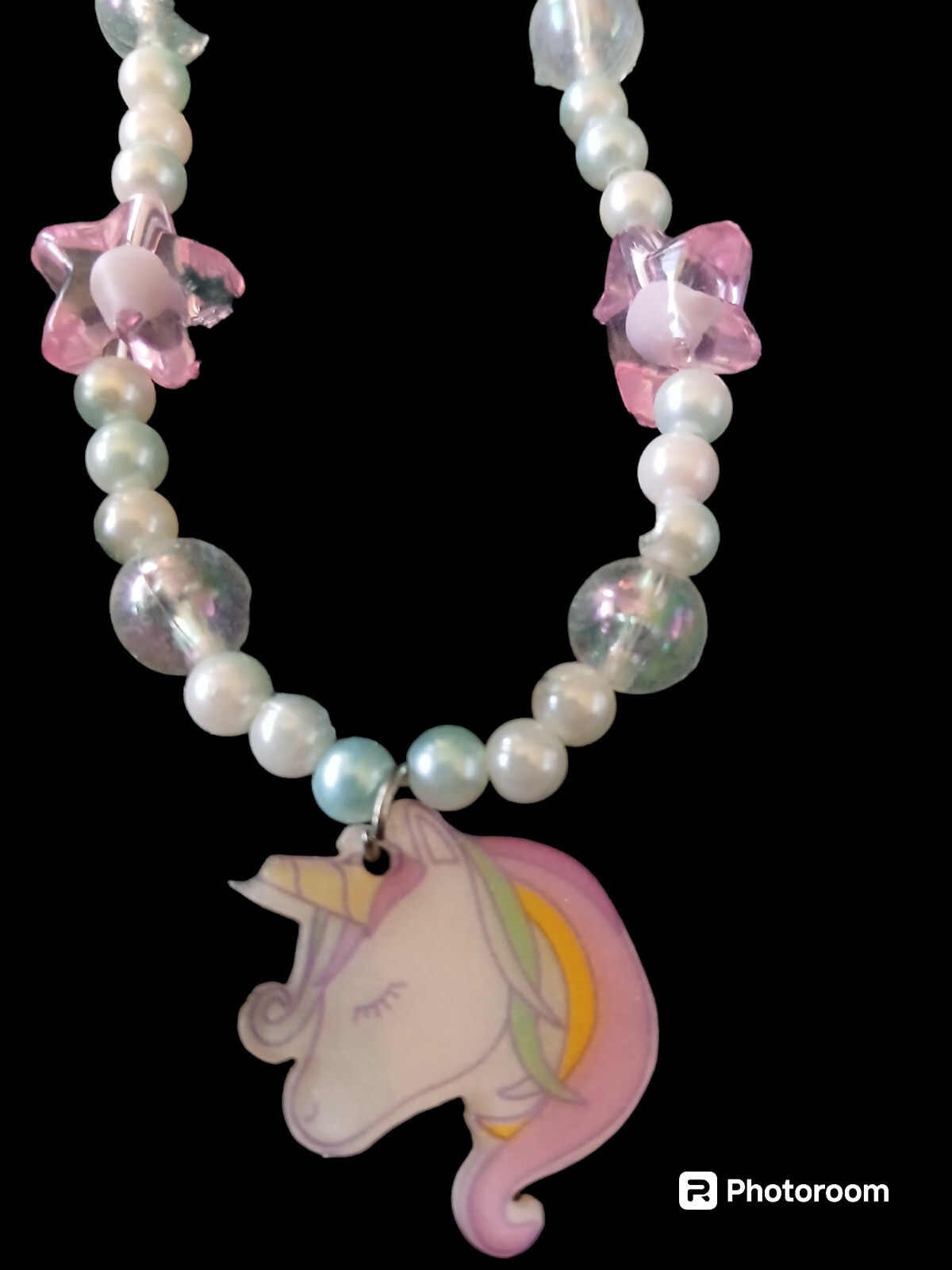 Beautiful Faux Pearled And Acryclic Unicorn Charmed Pendant Necklaces Girls