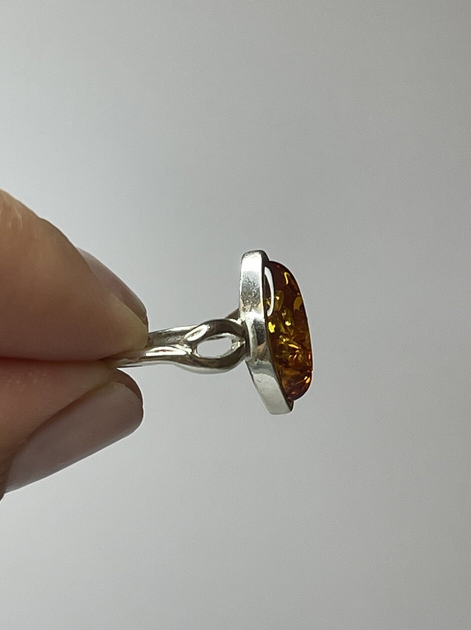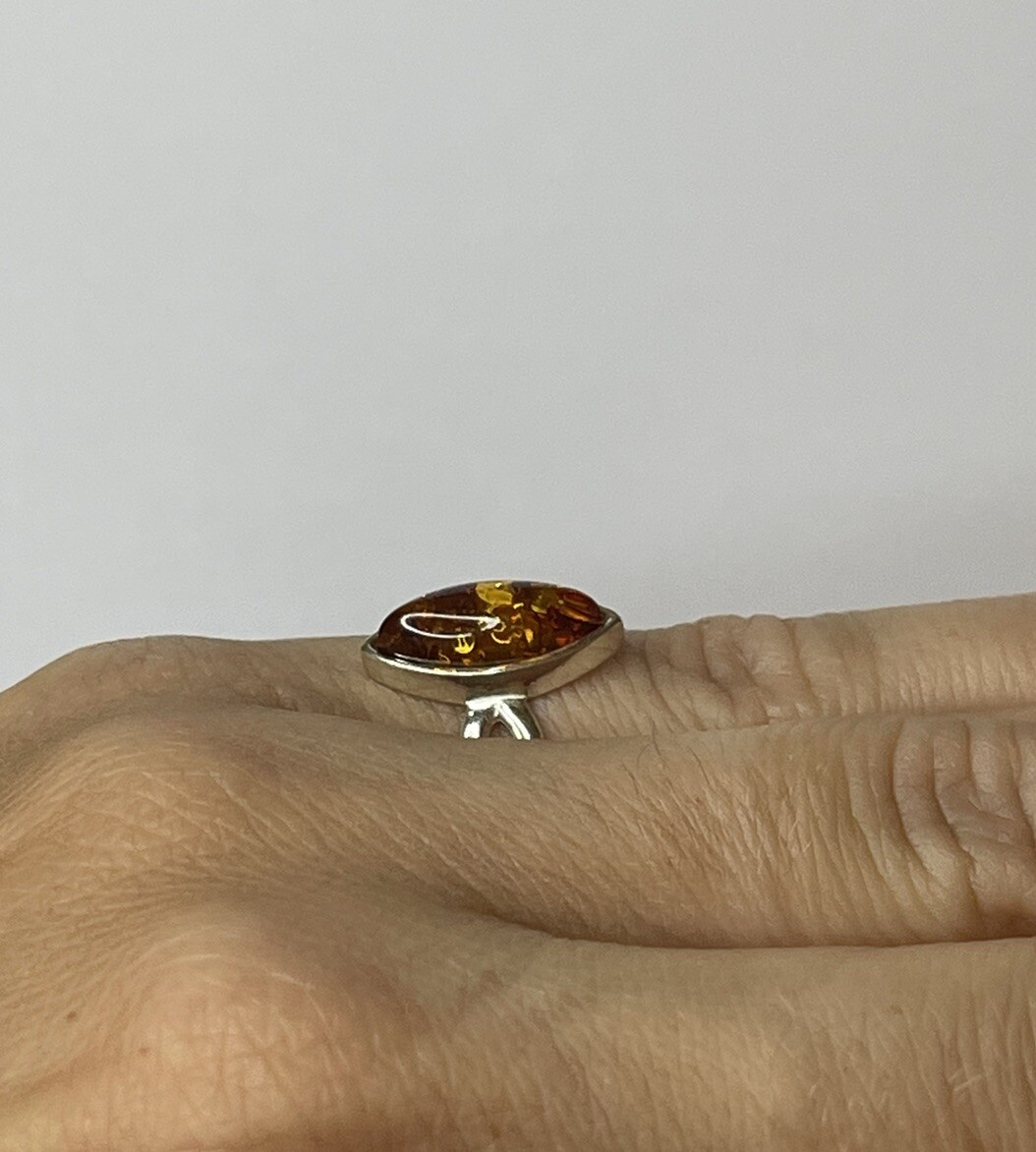 Genuine Baltic Amber Stone Ring with Sterling Silver.Cognac Amber Stone Ring.