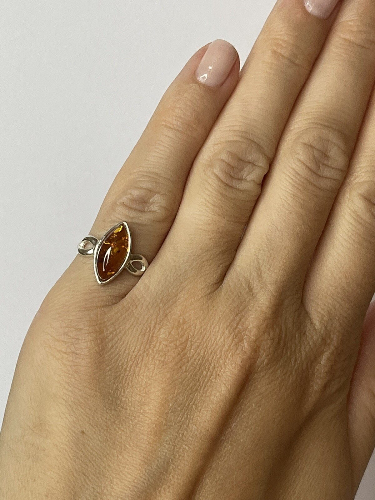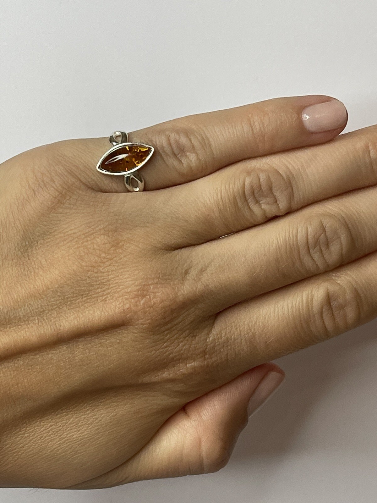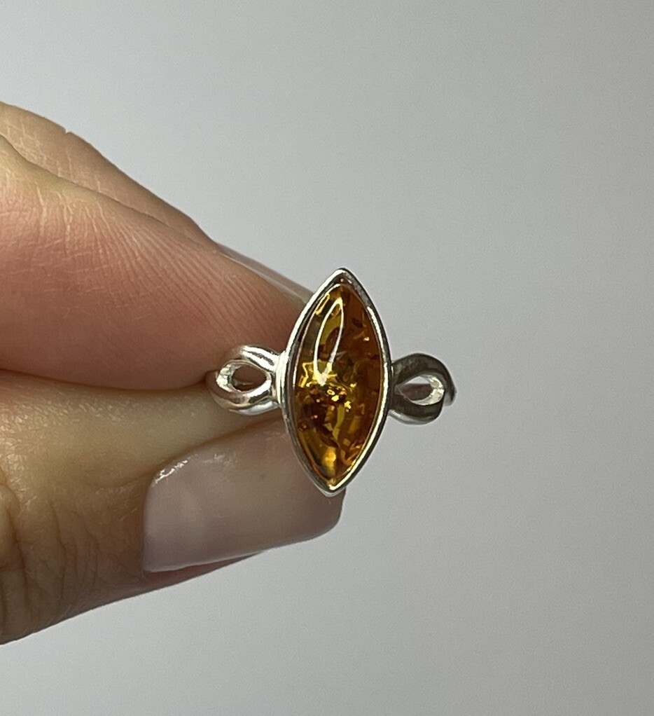 как выглядит Genuine Baltic Amber Stone Ring with Sterling Silver.Cognac Amber Stone Ring. фото