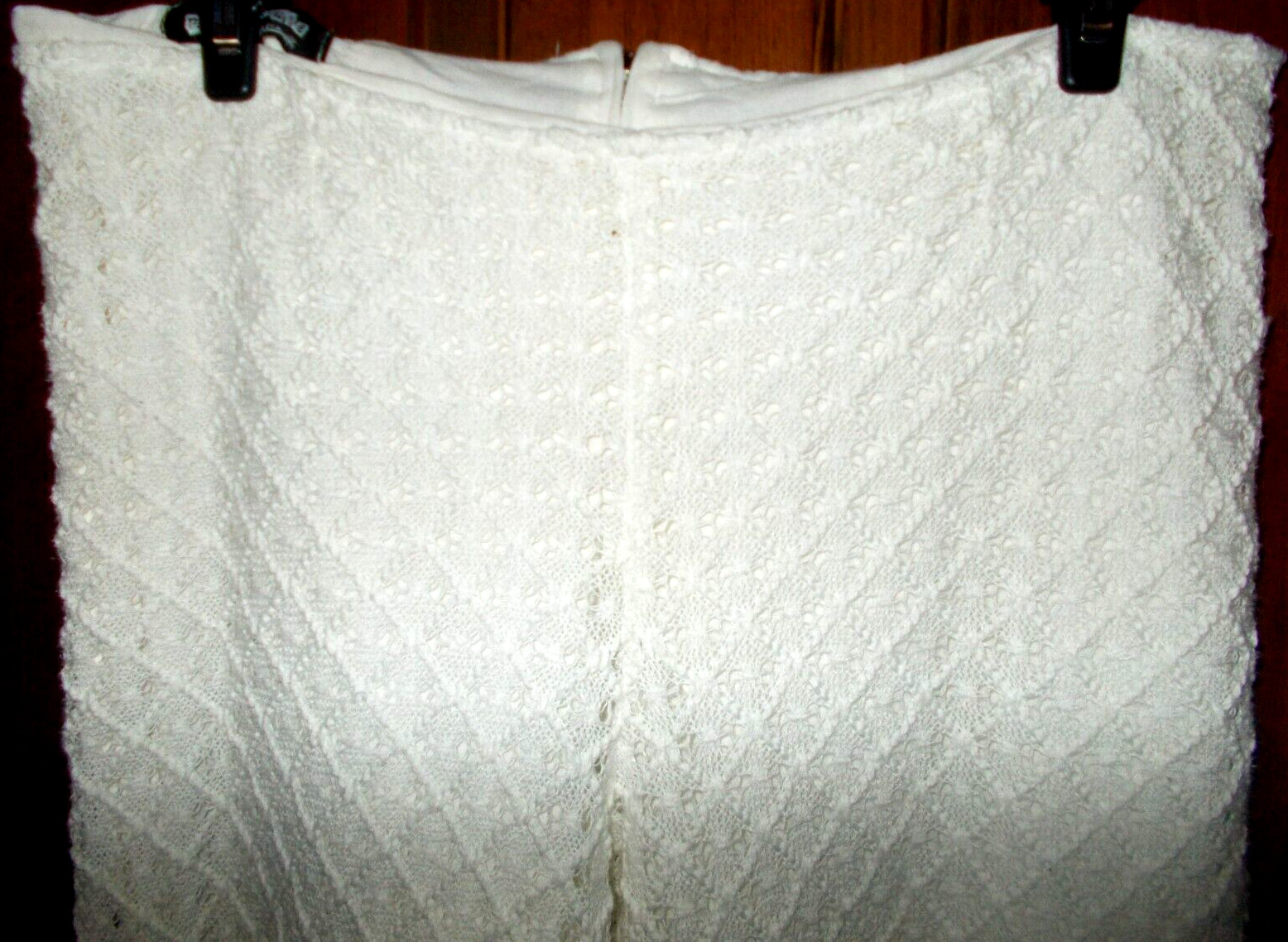 как выглядит Vintage Womens Mad House M. McElrath White Lined Crochet Bell-Bottom Pants-VGC фото
