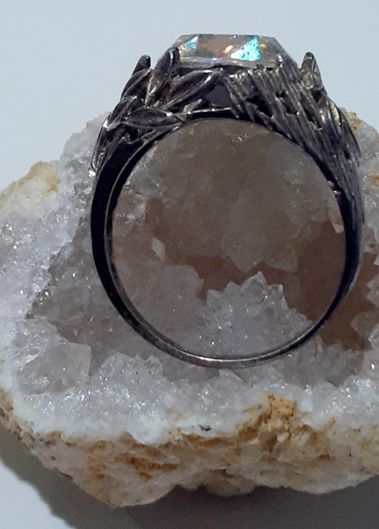 как выглядит Blue Topaz Ring size 8 Chunky Silvertone фото