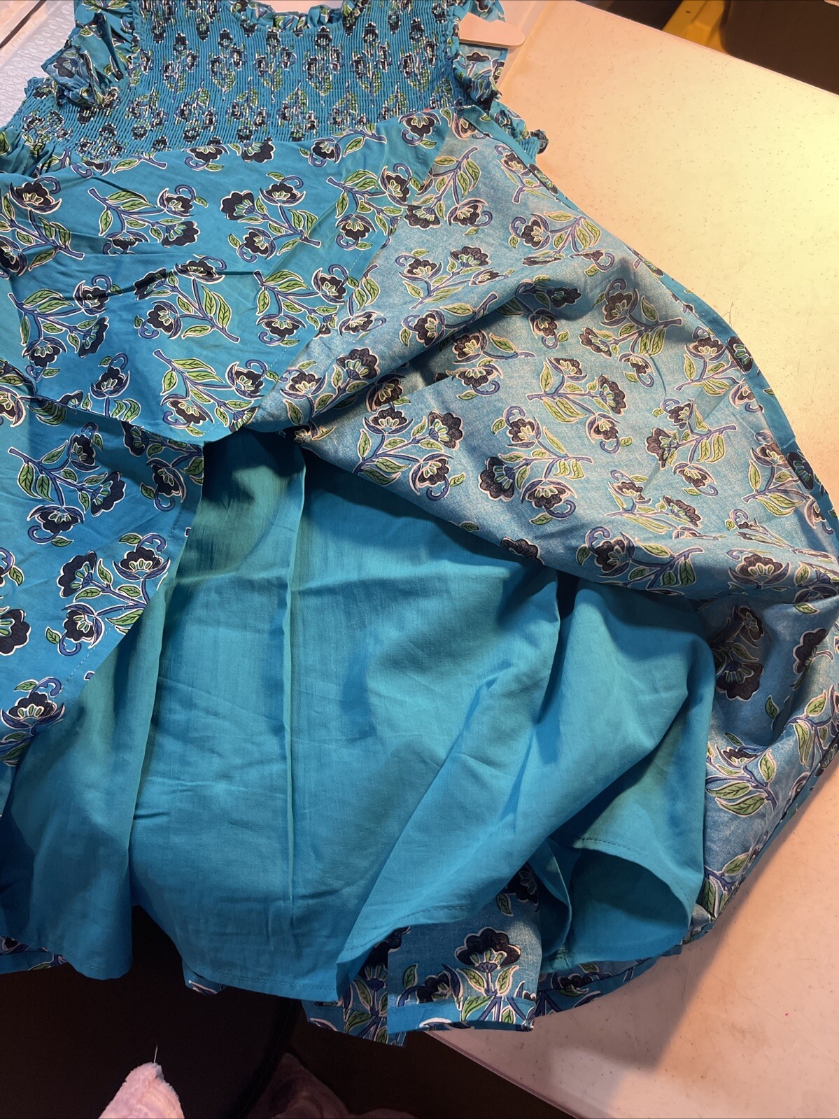 как выглядит NWT French Connection Youth Girls Cotton Smocked Ruffleneck Lined Dress MEDIUM фото