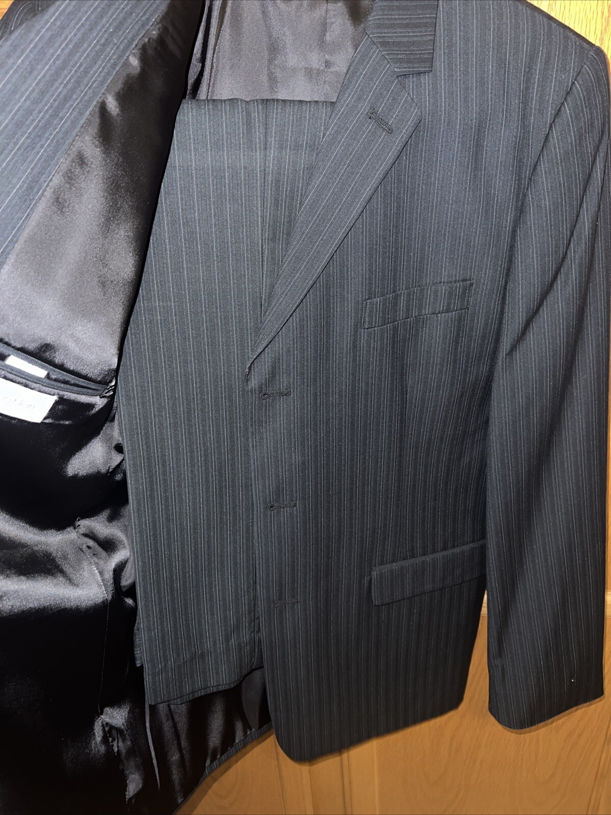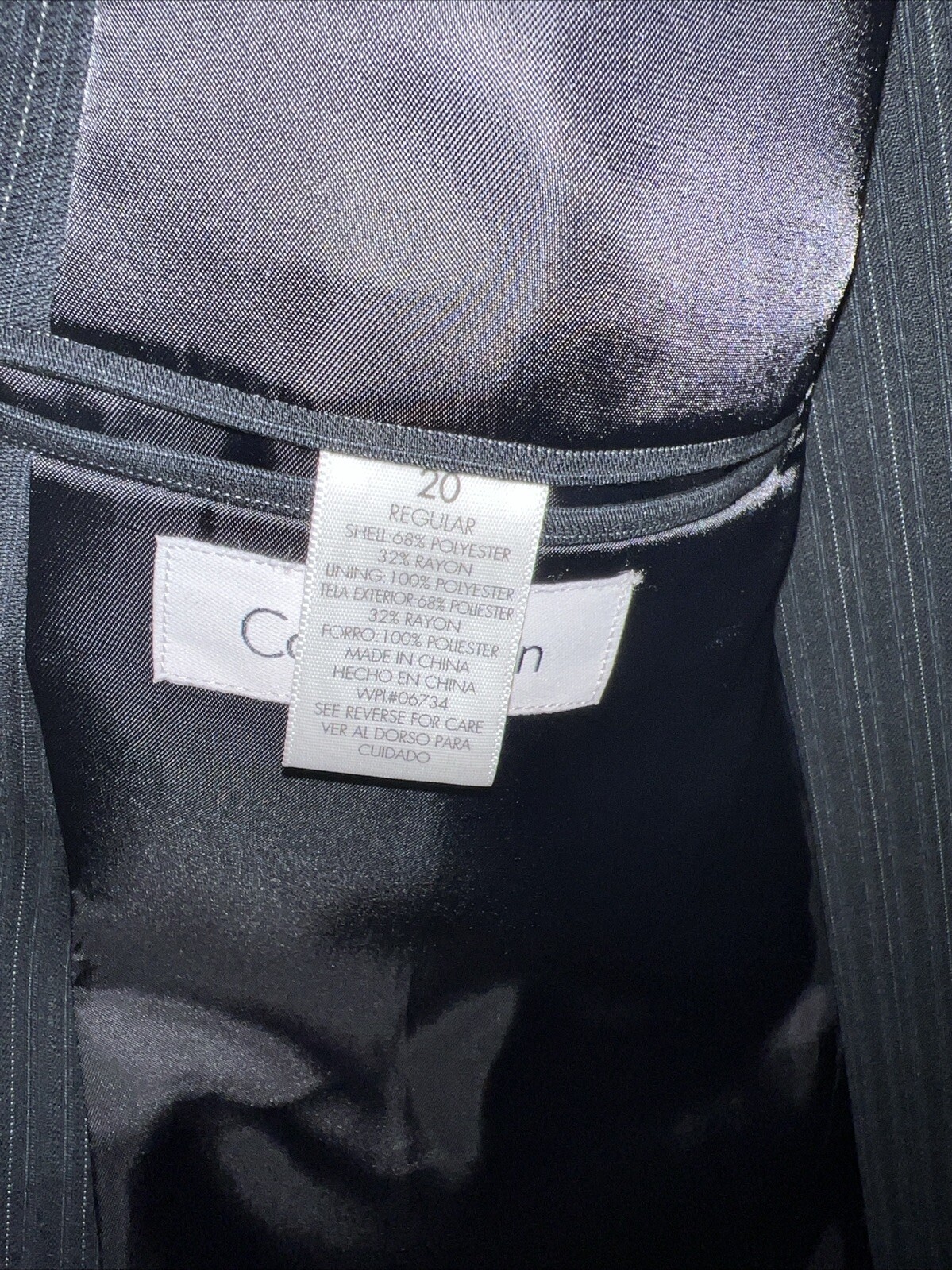 Calvin Klein Boys 20 Reg Jacket And Pants 18 Reg Black W/ Grey Pinstripes