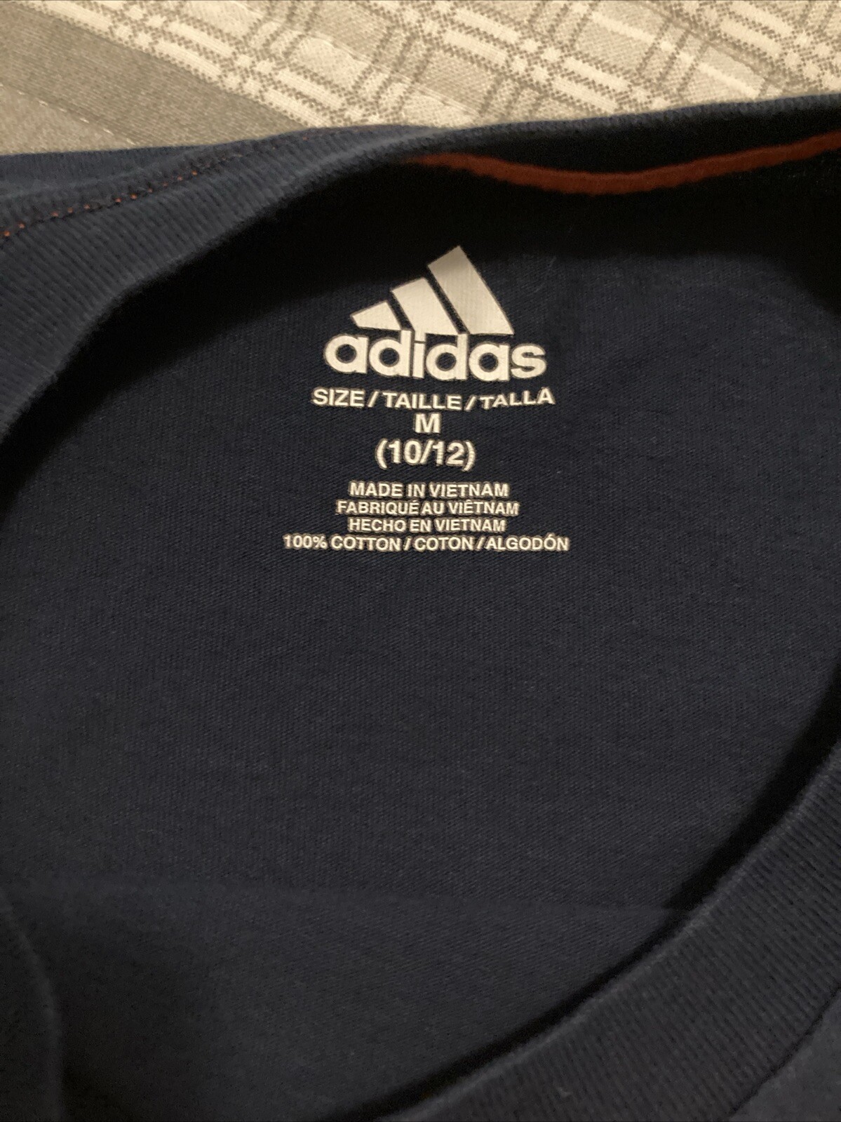 Adidas Boys M 10-12 SS T-Shirt, Logo, Navy Blue