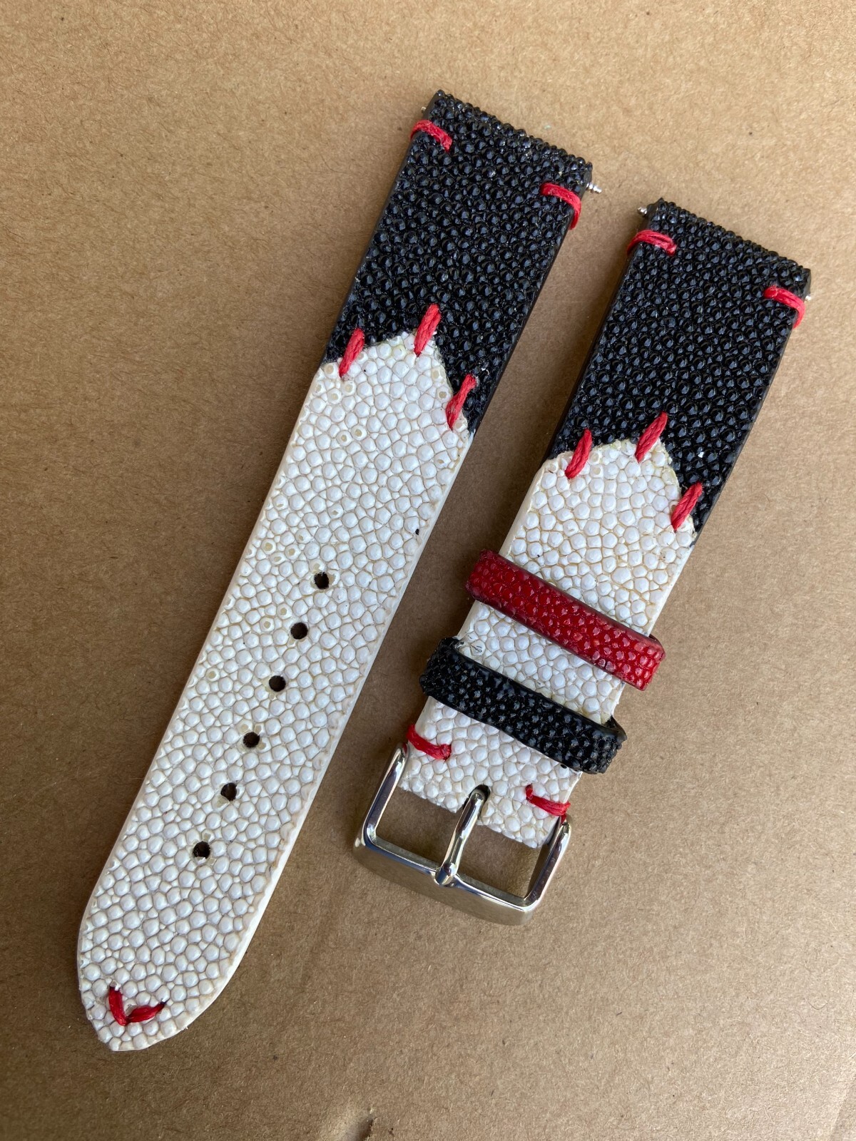 Black - White Stingray Watch Strap Band 16mm 18mm 19mm 20mm 21mm 22mm 24mm 26mm