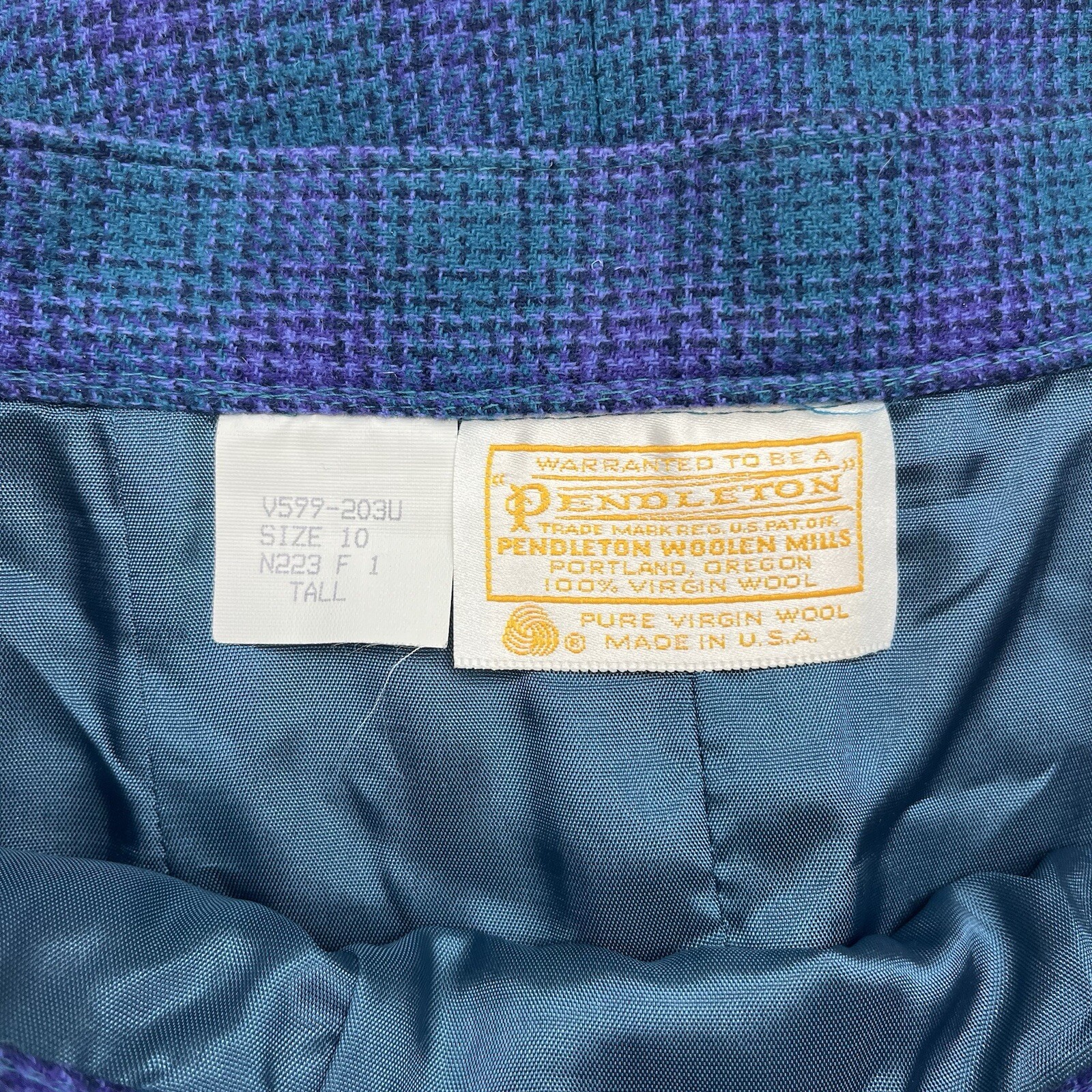 Vintage Pendleton Purple Blue Plaid 100 Virgin Wool Skirt Womens Size 10 Tall