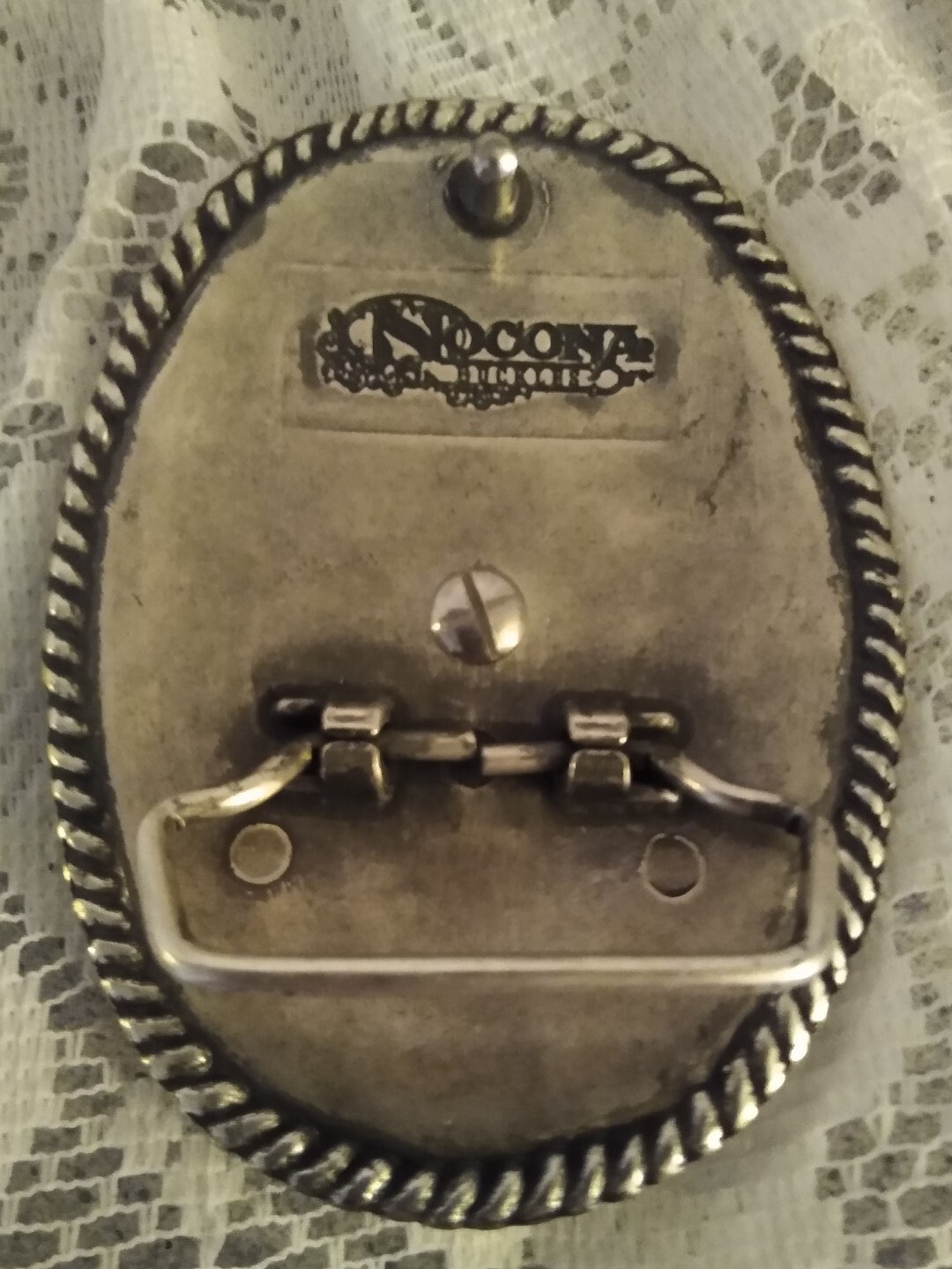 Beautiful Nocona Belt Buckle Pewter Silver Color w/ Gold Jeweled Cross Trim