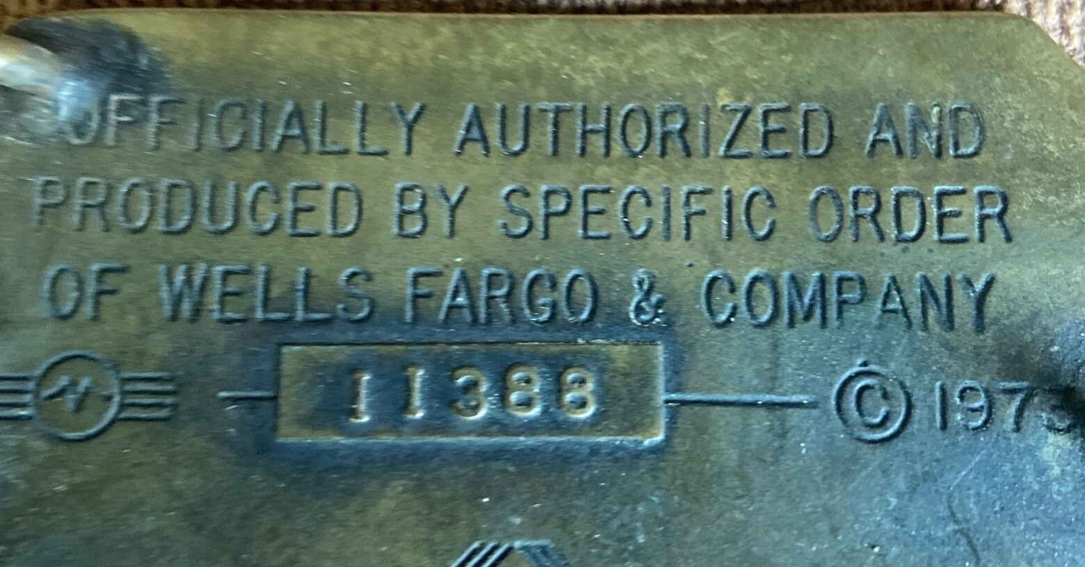 VINTAGE 1973 WELLS FARGO CO. BELT BUCKLE. OFFICIALLY AUTHORIZED. SINCE 1852.