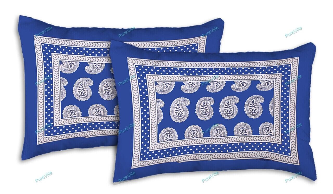 Rajasthani Sanganeri Printed Cotton Double Bed Sheet 2 Pillow Cover 90x108 KING