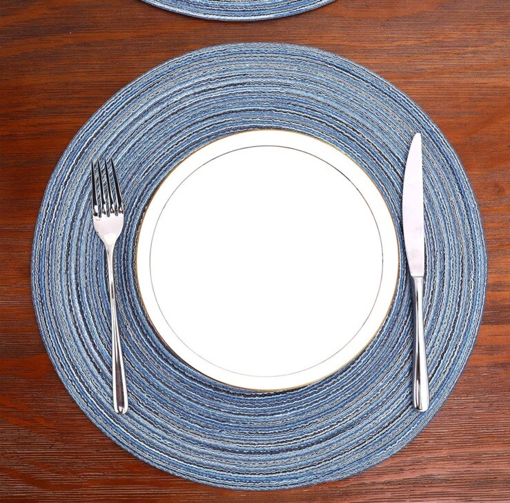 как выглядит Round Braided Placemats Set of 6 Washable Woven For Kitchen Table-Blue/Grey-New фото