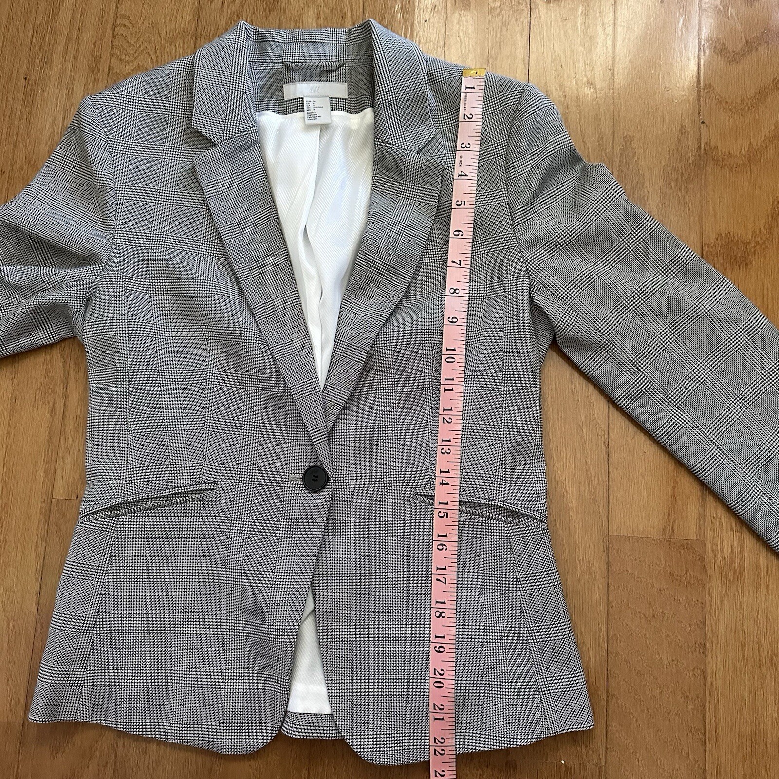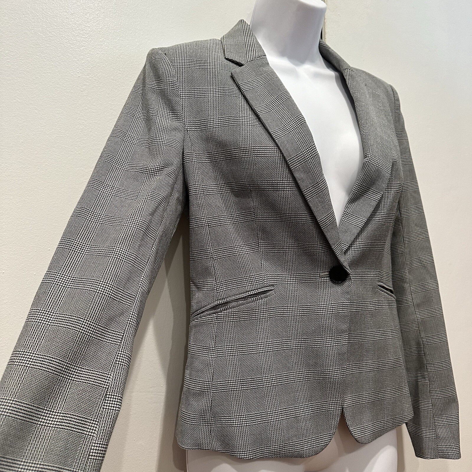 H M Women s Gray Houndstooth Plaid Blazer Size 4