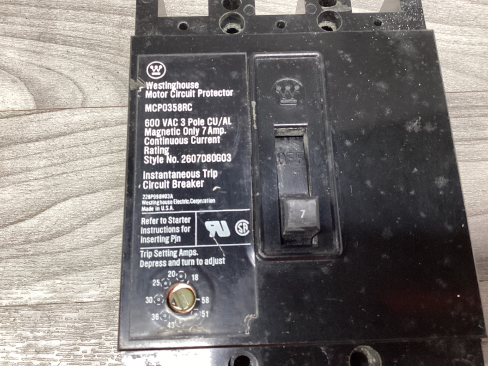 как выглядит WESTINGHOUSE MCP0358RC CIRCUIT BREAKER 7A 3-POLE 600V 7 AMP 33G133PR7 CO фото