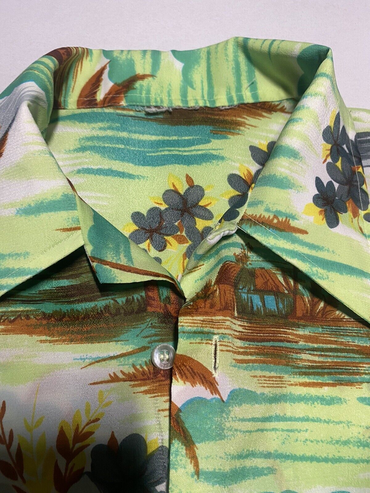 как выглядит Vintage Floral Hawaiian Shirt Size M/L Green фото