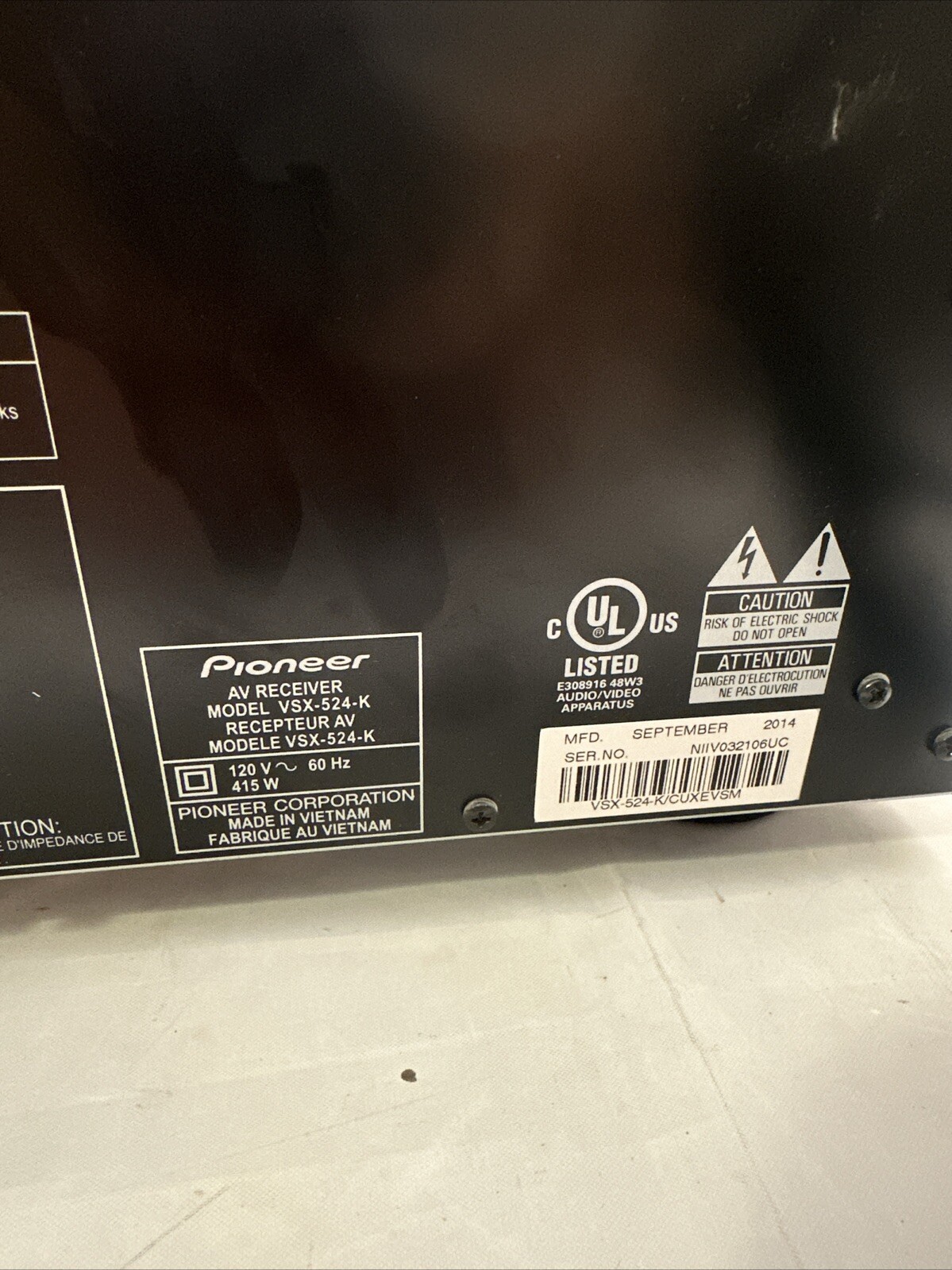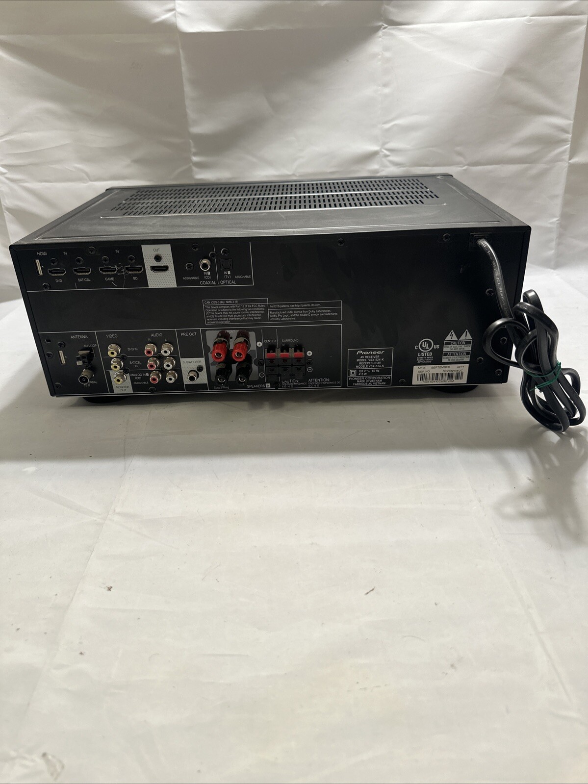 Pioneer VSX-524-K 5.1 Channel 415 Watt HDMI Dolby DTS Surround Sound AV Receiver