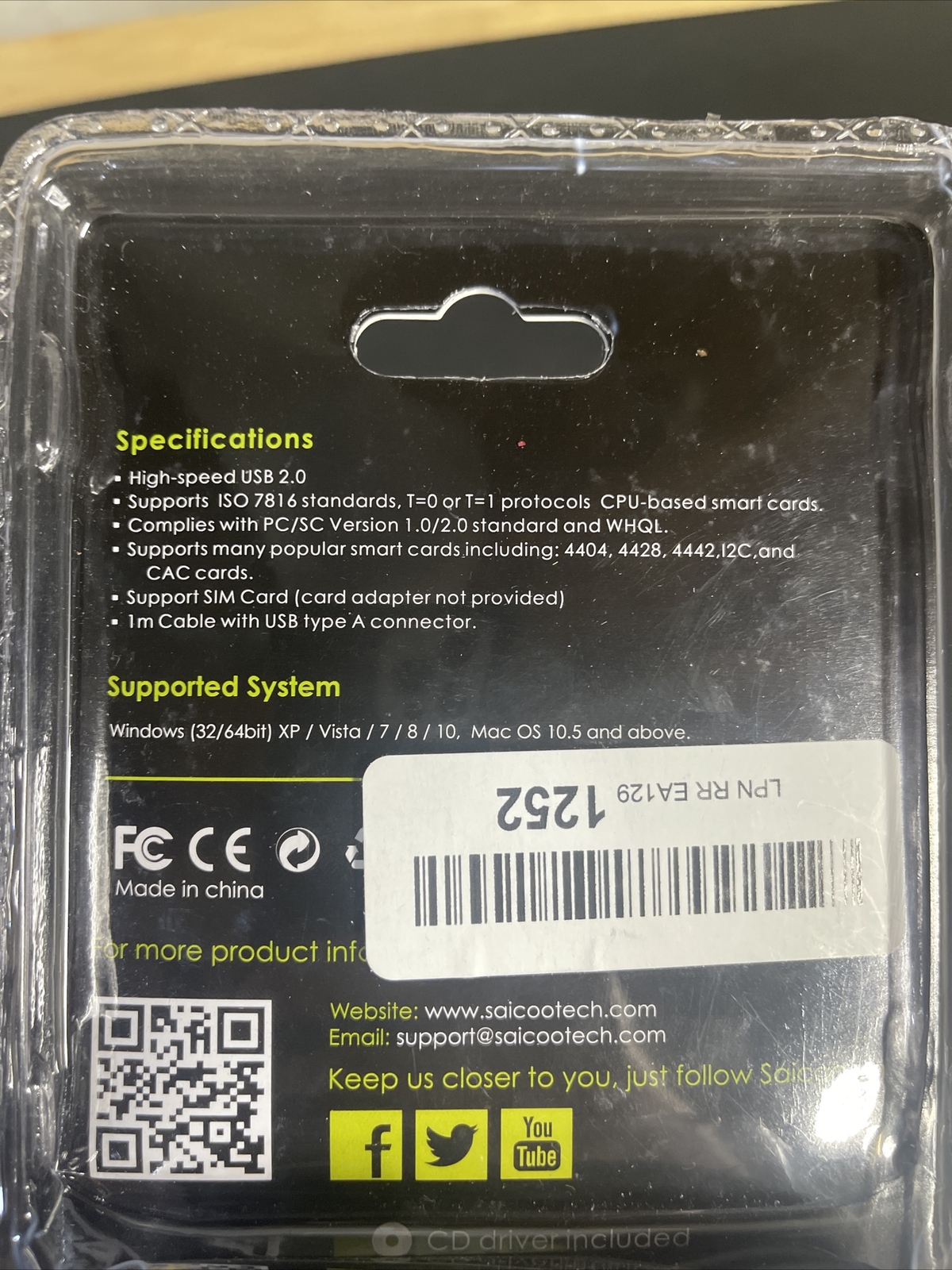 NEW Saicoo USB Smart Card Reader Supports Windows XP Vista Mac OS FREE SHIPPING