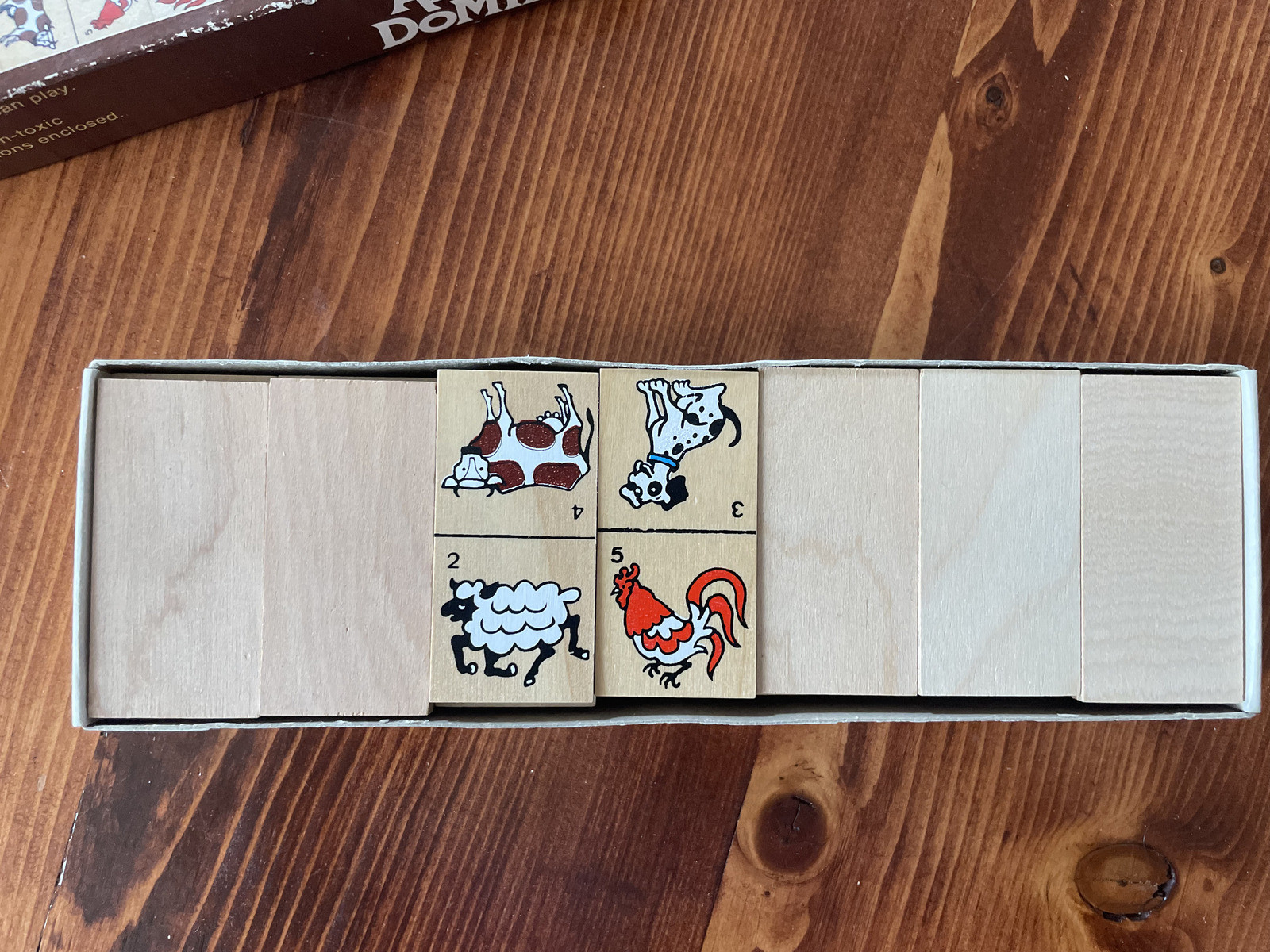Vintage Wooden Animal Dominoes 28 Piece Family game 1985