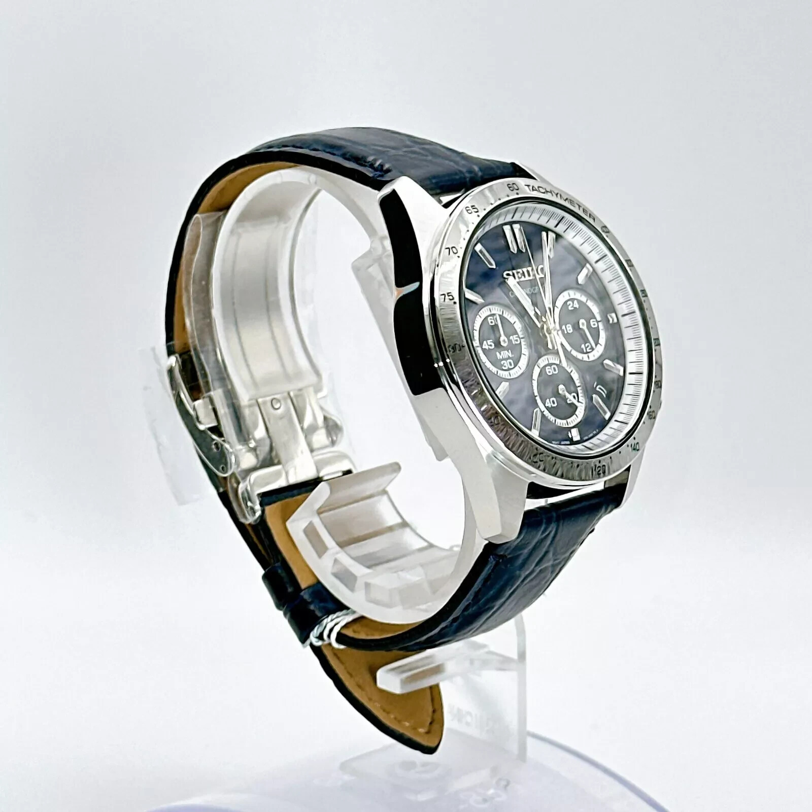 SEIKO SPIRIT SBTR019 Chronograph Quartz Blue Face Men's Watch Leather Band 40mm