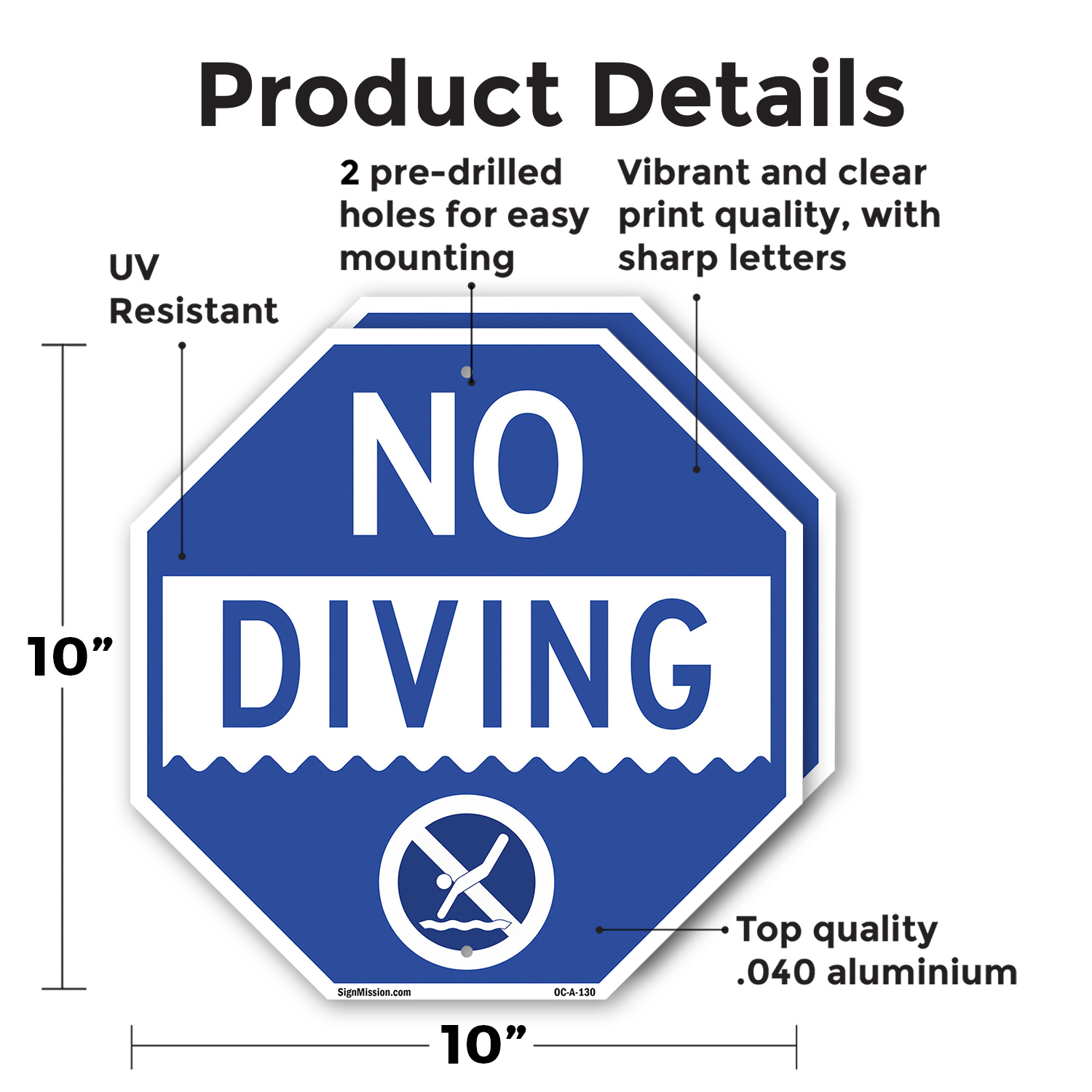 No Diving Octagon Sign Weather Resistant UV Protected Made in the USA