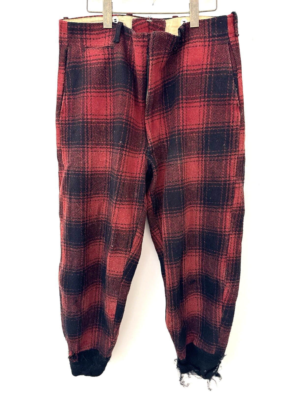 как выглядит Hunting Pants Genuine Boat Sail Drill Mens 32 Wool Thick Red Plaid Vintage 60s фото