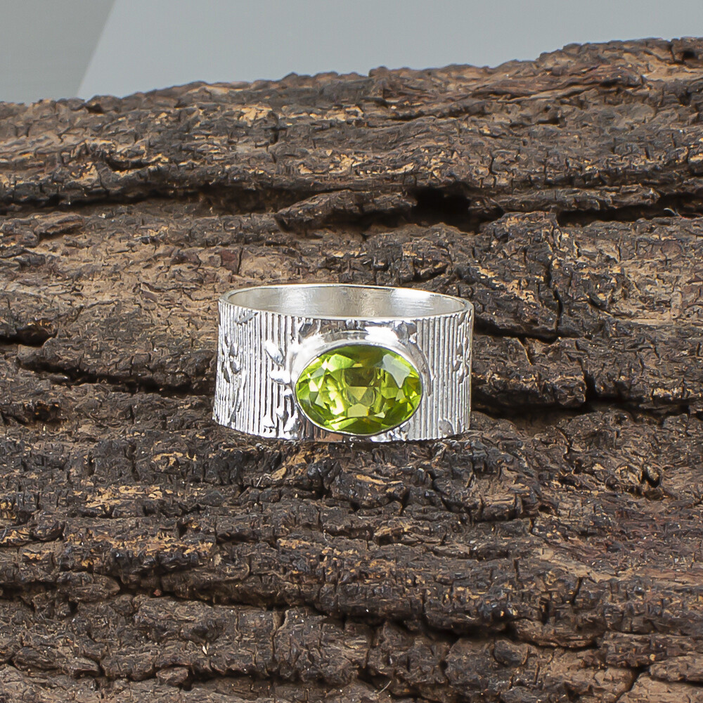 как выглядит Natural Peridot Gemstone Band Ring Size 925 Sterling Silver Jewelry фото