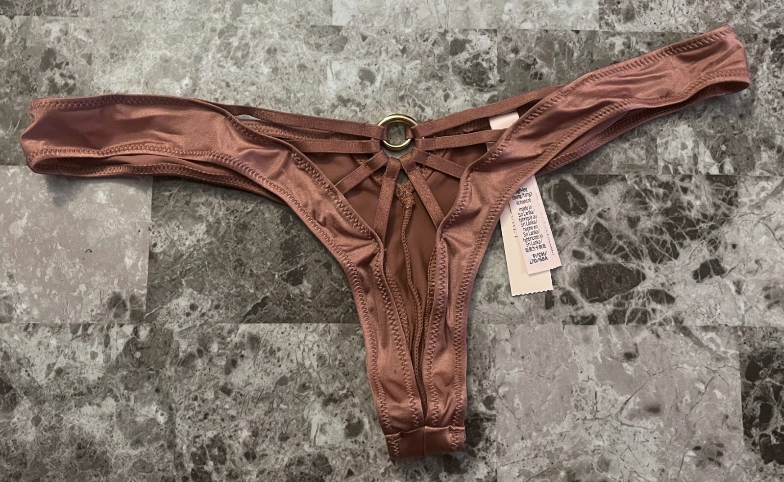 как выглядит NWT VICTORIAS SECRET MAUVE SMOOTH STRAPPY GOLD RING CROTCHLESS THONG PANTIES фото