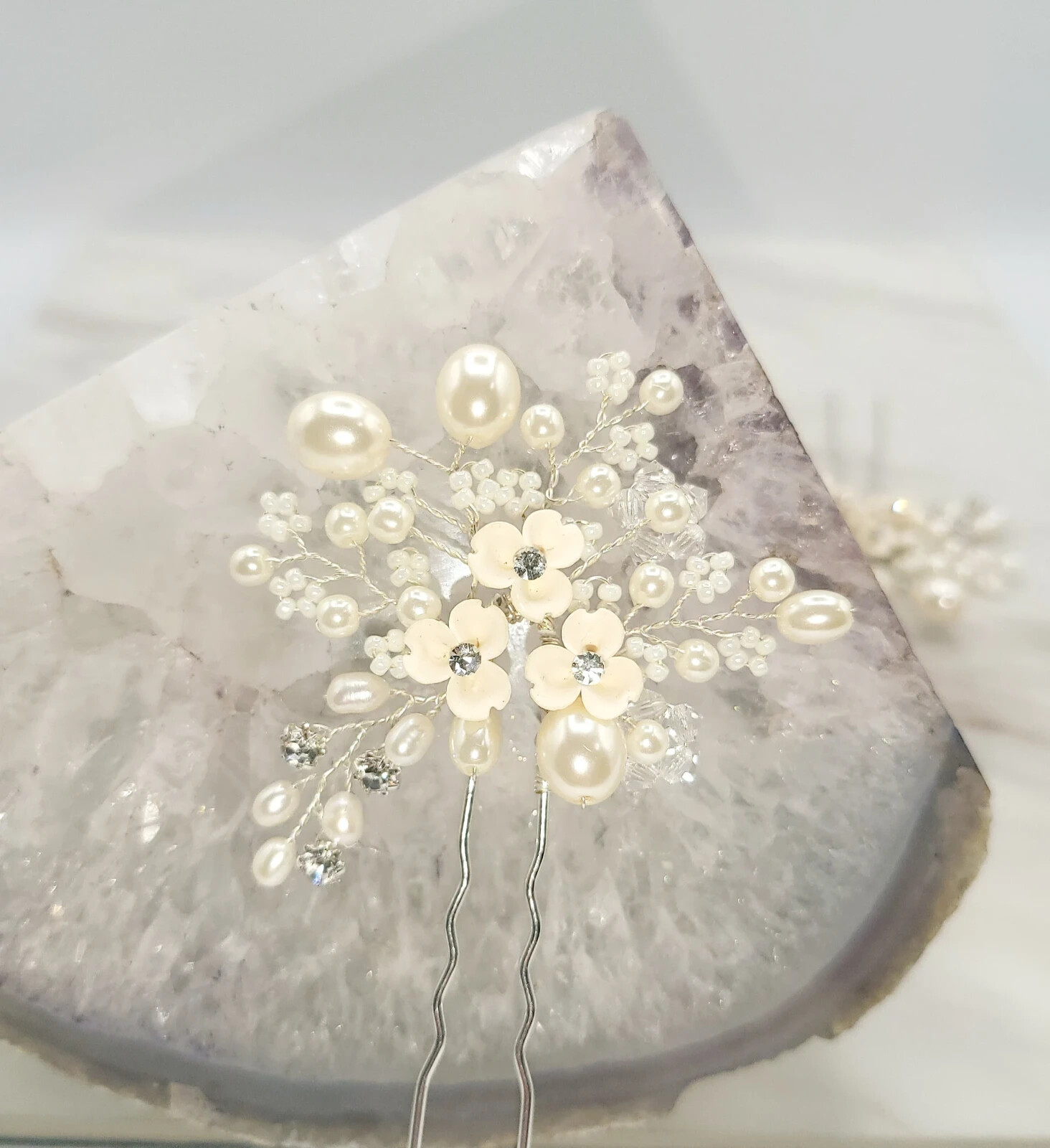 Floral bridal wedding hair pin Accessory Set of 2 flower pins Hair Clips 3428