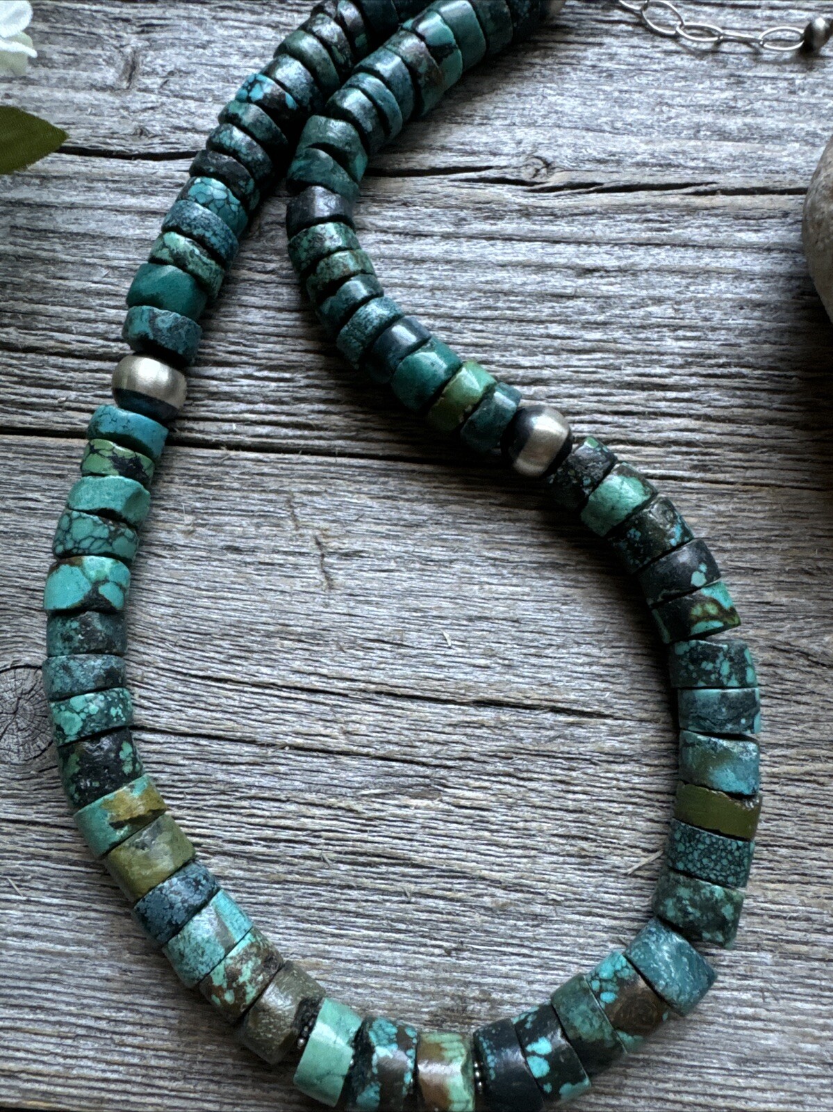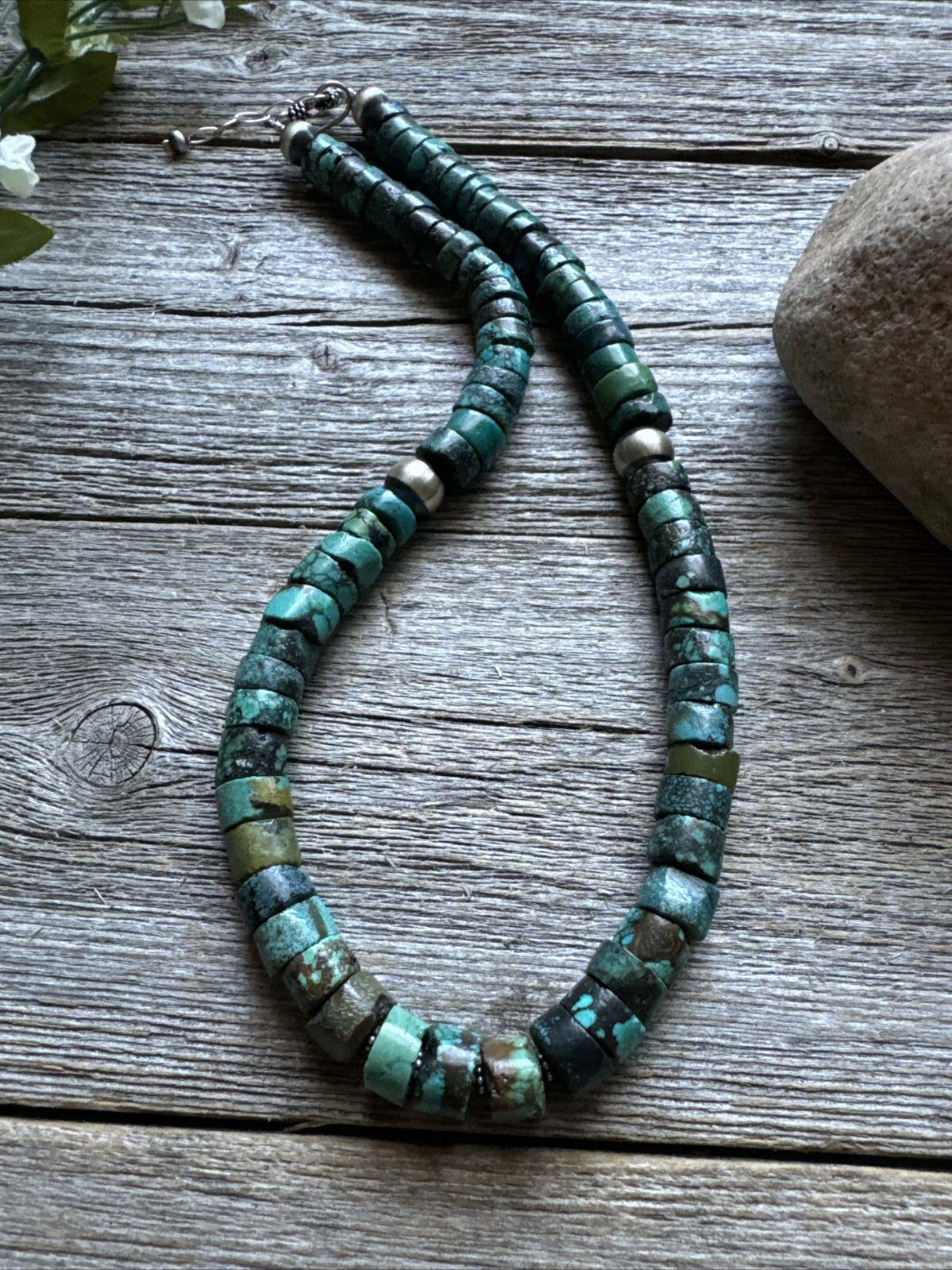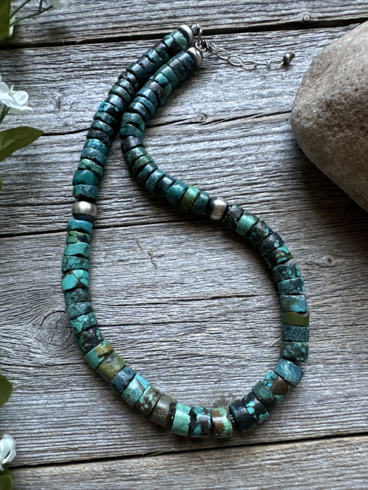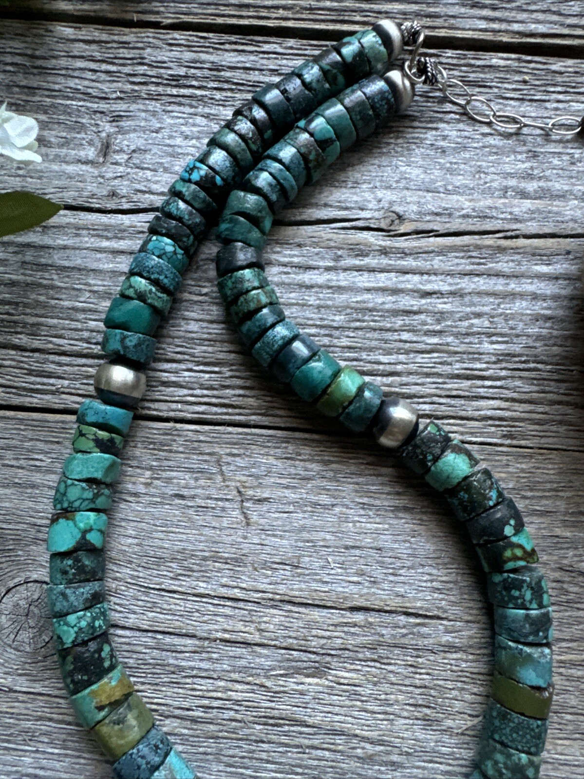 Southwestern 925 Sterling Silver Turquoise Heishi Bead Necklace. 16 inch
