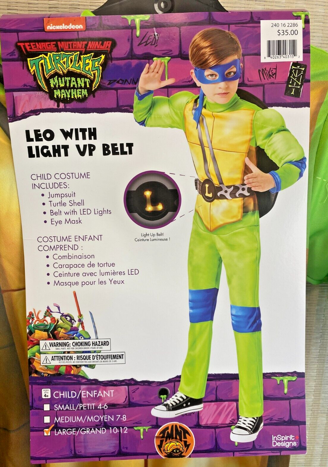 TMNT Mutant Mayhem Leo Kids Costume W/Light Up Belt 10/12 Medium NWT
