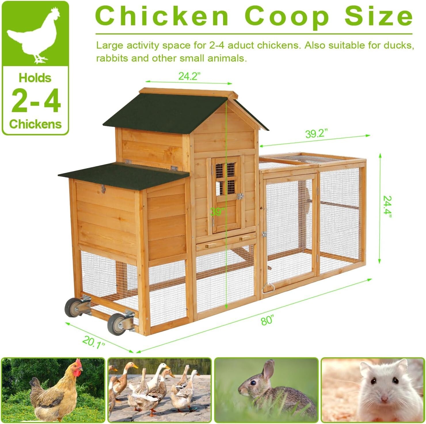 как выглядит 80 Chicken Coop with Wheels,Mobile Chicken House for 2-4 Chickens w/Nest box фото