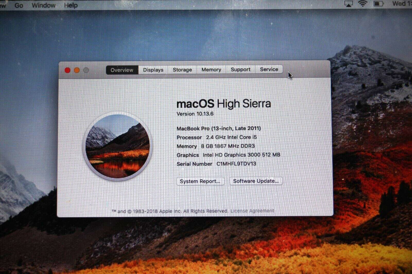 APPLE MACBOOK PRO 2011 13 CORE I5-2.4GHZ 8GB RAM 240GB SSD HIGH SIERRA T8