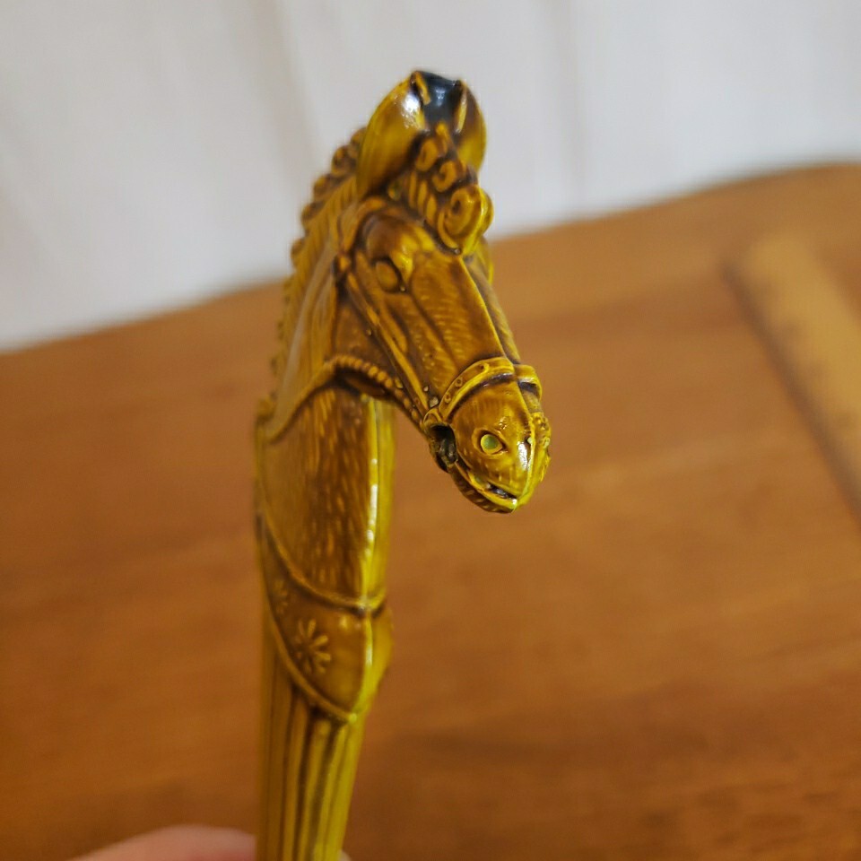 Vintage 1960's Butterscotch Bakelite Plastic Horse Head Handle 12 Shoehorn