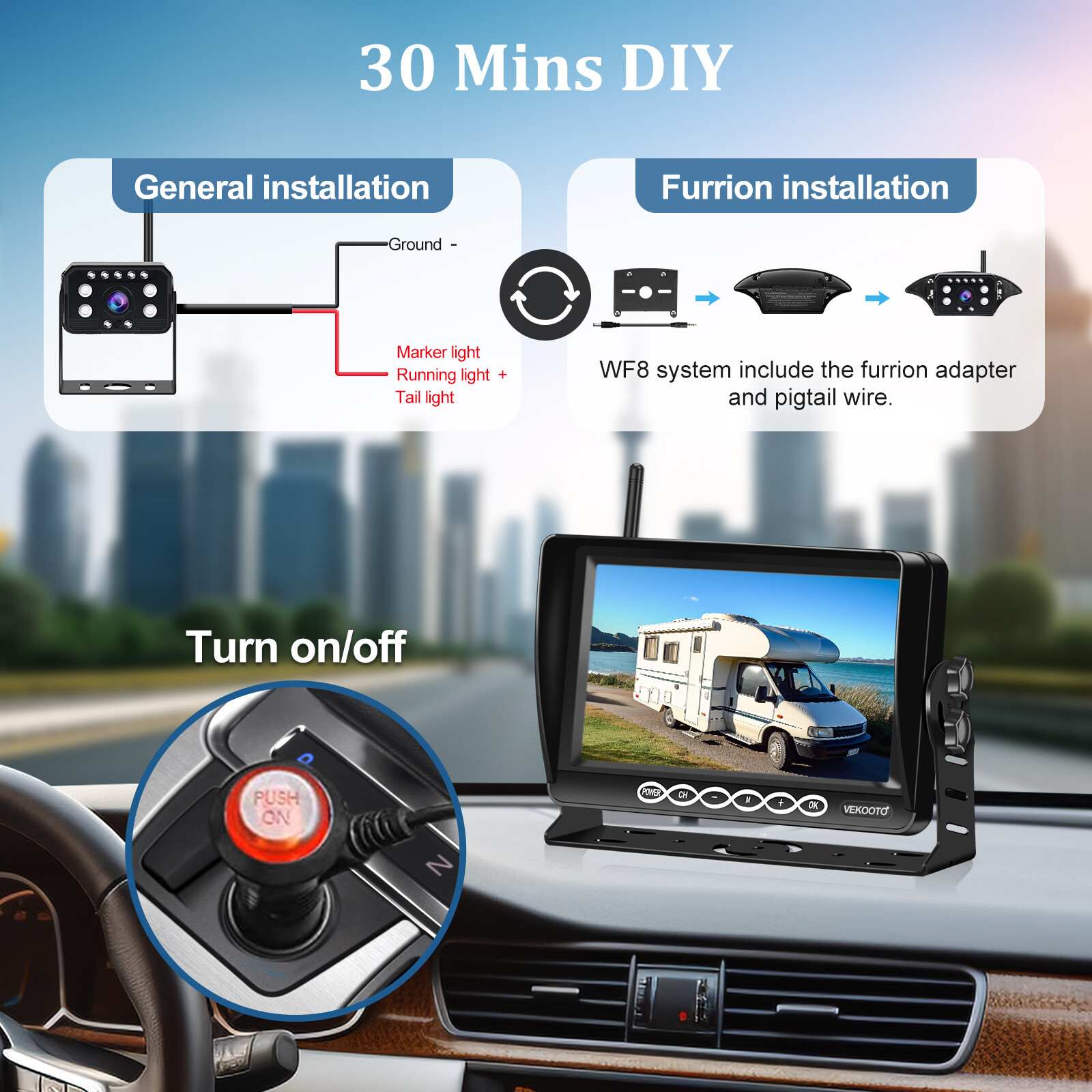 RV Backup Camera Wireless System: Pre-Wired for Furrion 7'' Touch Key Monitor