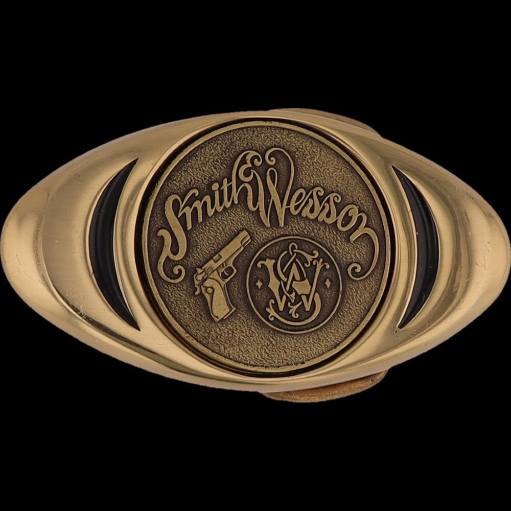 как выглядит New Brass S W Smith Wesson Revolver Western Gun Pistol NOS Vtg Belt Buckle фото
