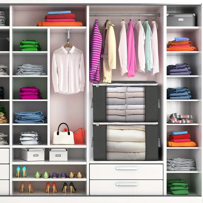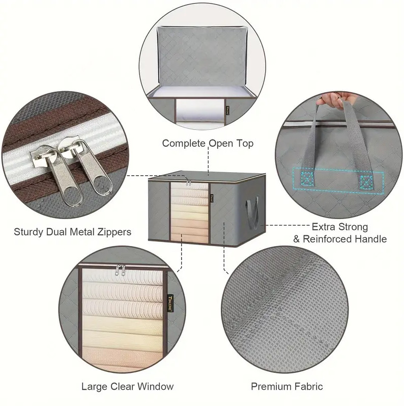 6 Pack Foldable Clothes Storage Bags with Lids Handles -Bedroom, Closet More