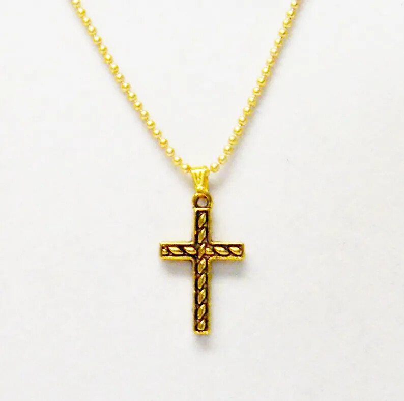 Gold Plated Beaded Cross Pendant Necklace for Child