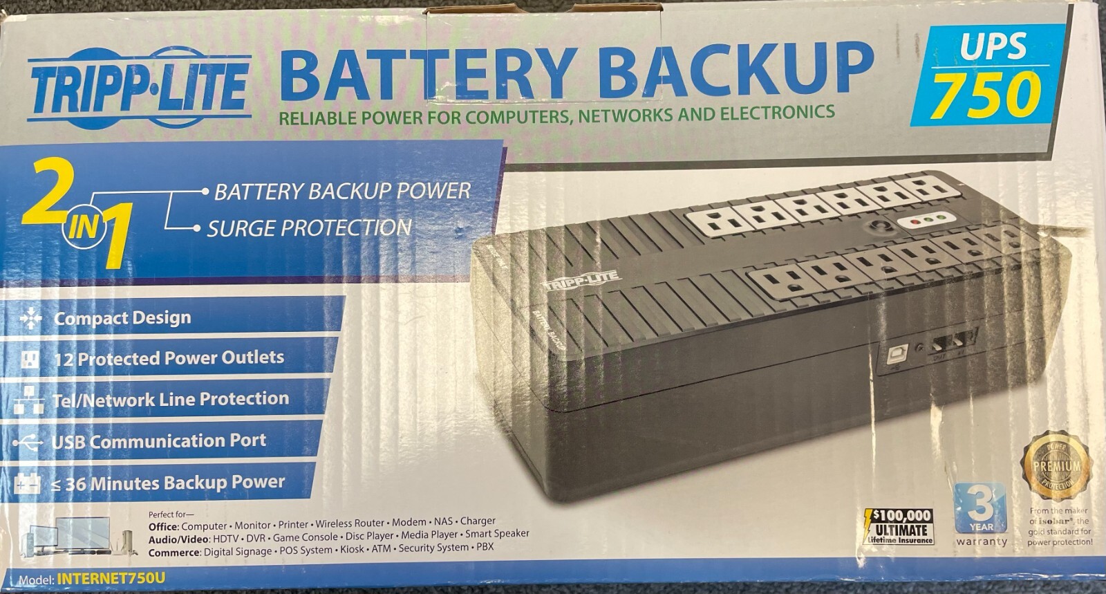 Tripp Lite UPS 750VA 450W-2 in 1 Battery BackUp Surge Protection 120V USB NEW