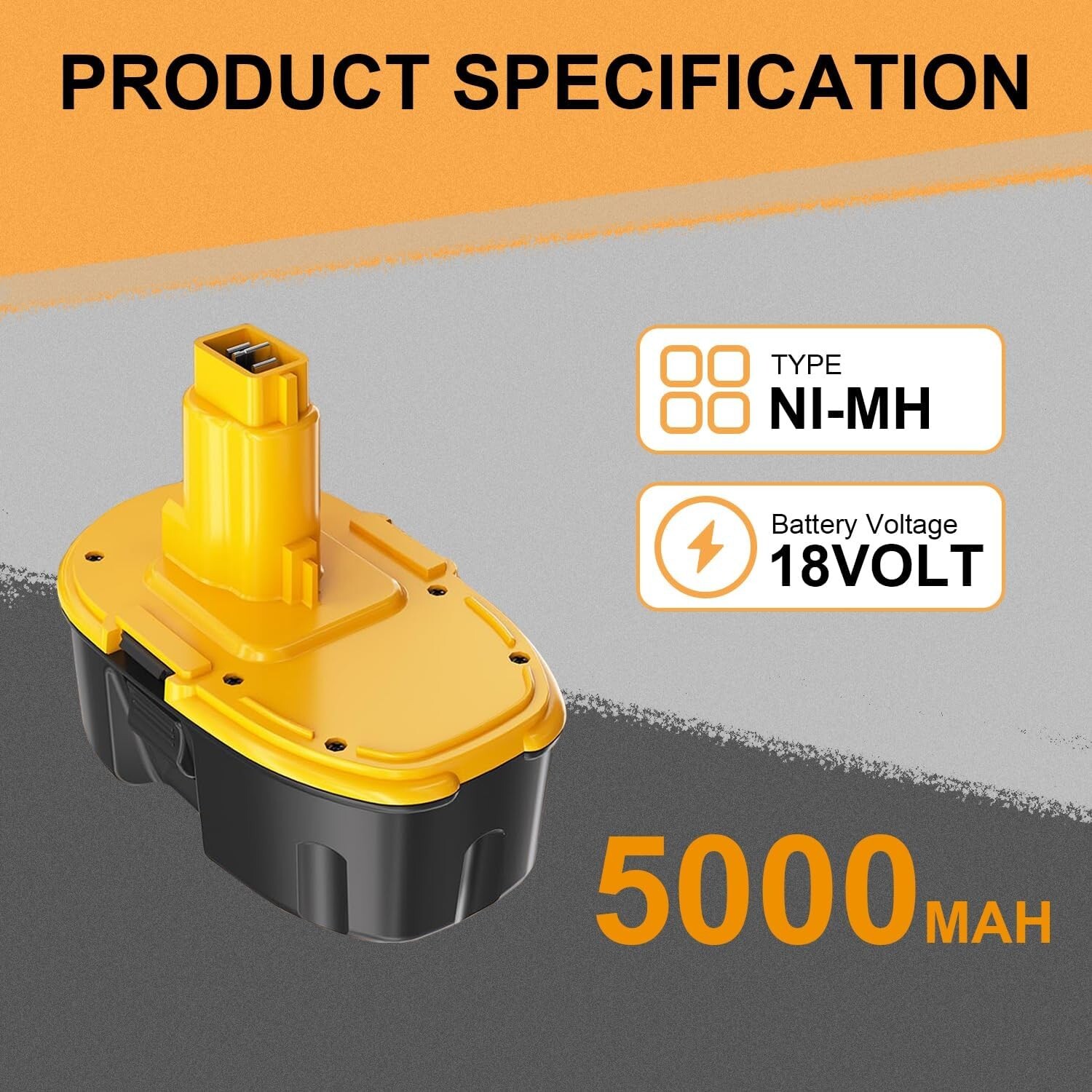 2Pack 18 Volt Battery Replacement for Dewalt 18V Ni-Cad DC9096 DC9098 DC9099