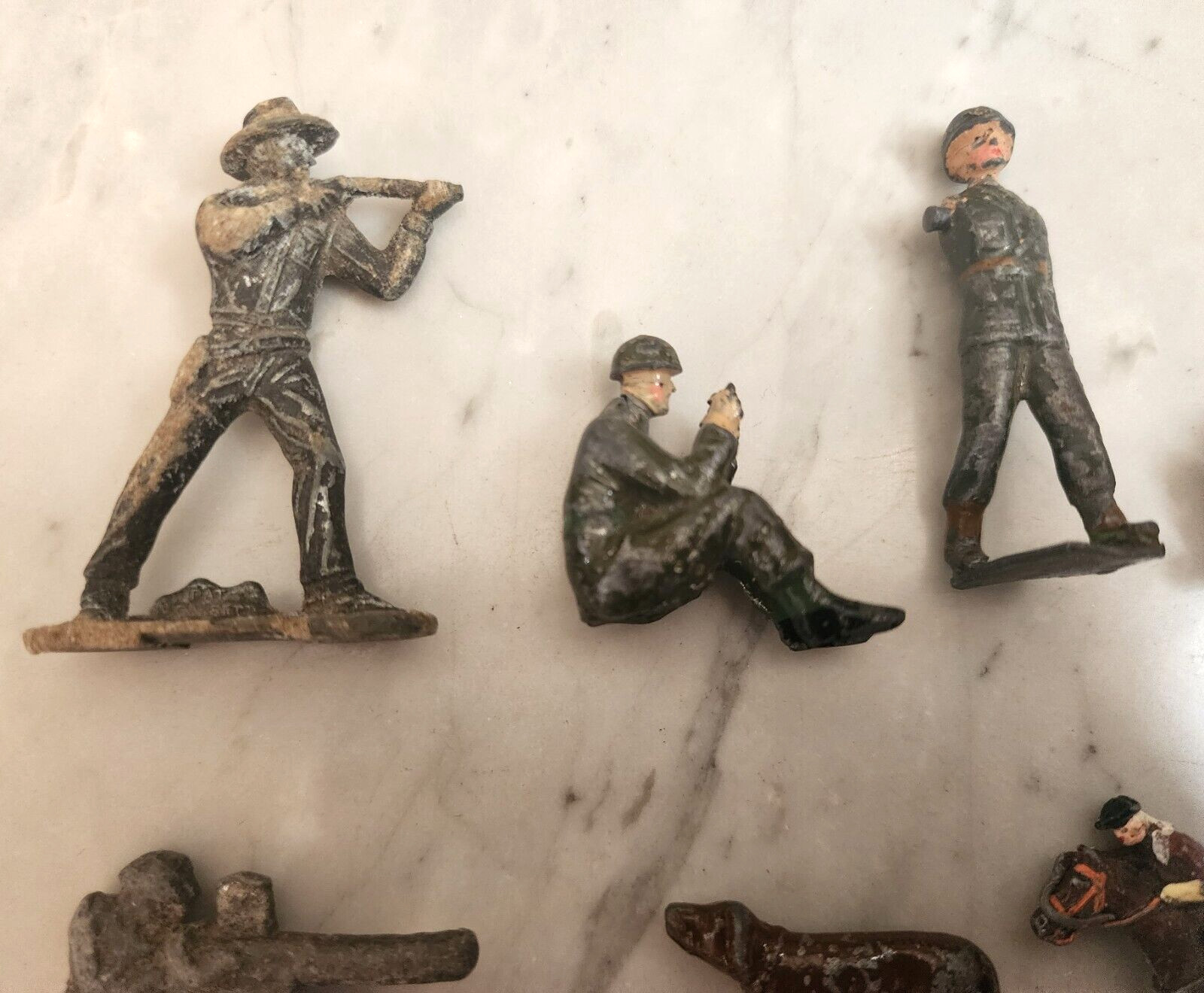Vintage Lot Metal Toy Military Soldiers Cowboy Indian Dog Horse Sitting Man T11