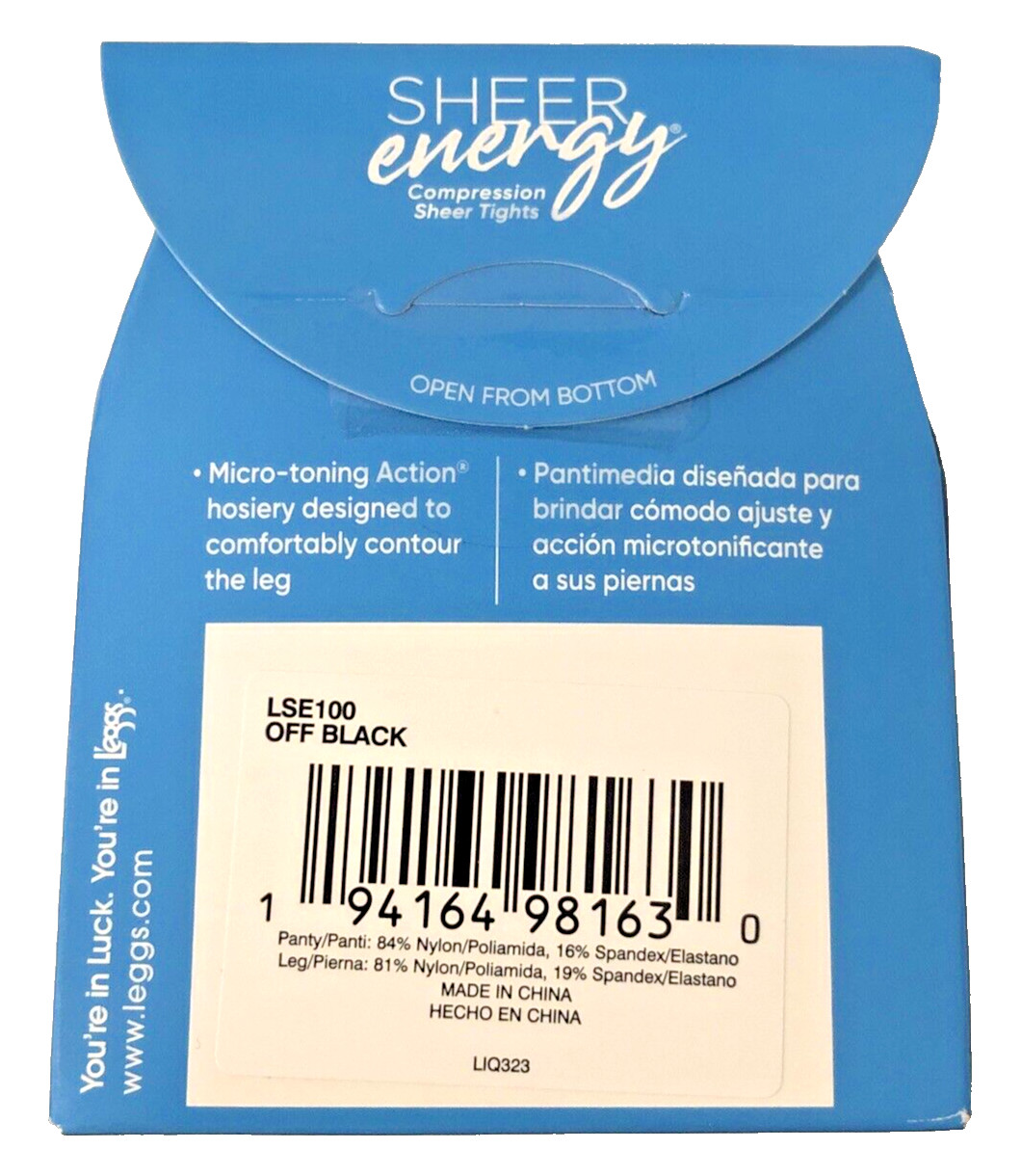 L'eggs Sheer Energy Q Off Black Control Top Med Support Leg Sheer Tights 1 Pair