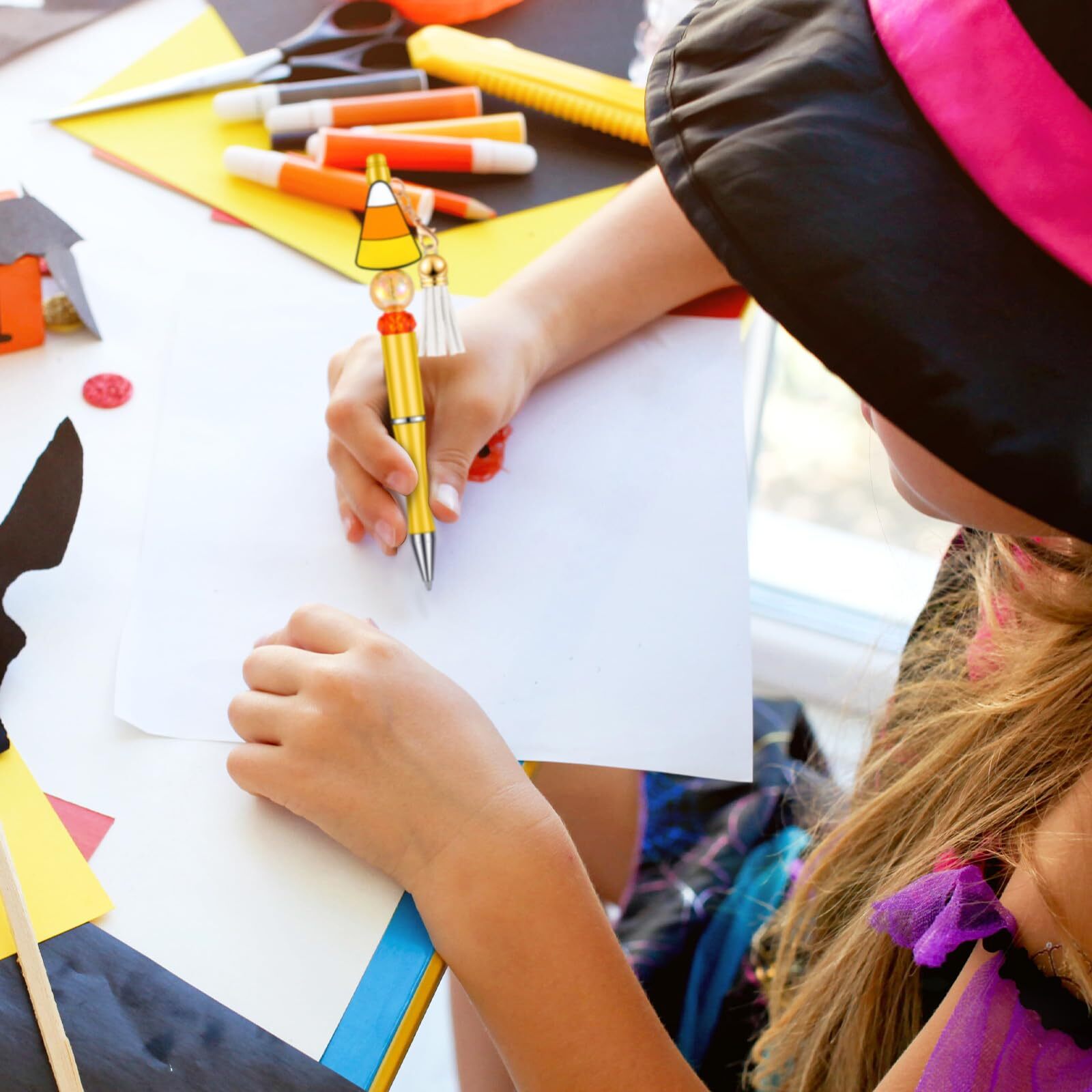 12 Sets Beadable Pens Bulk Halloween Bead Pens with Silicone Beads Tassels Cl...