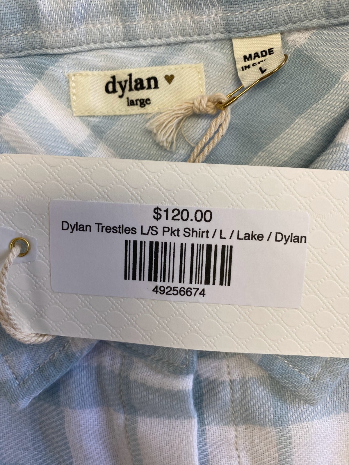 как выглядит REDUCED NWT Dylan 100 Cotton Light Blue Check Button Up Shirt L WAS 39 NOW 29 фото