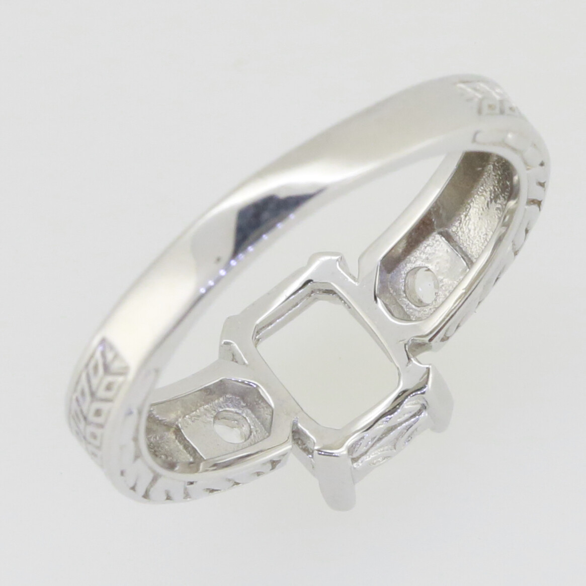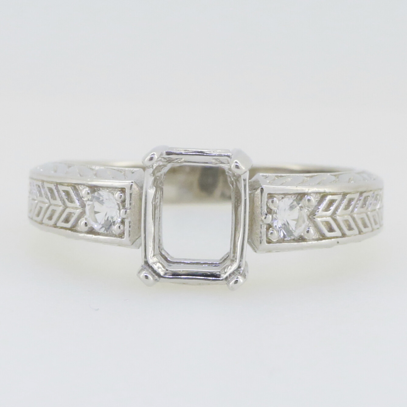 Sterling Silver Semi Mount Ring Setting Emerald OCT 8x6mm Art Deco Style