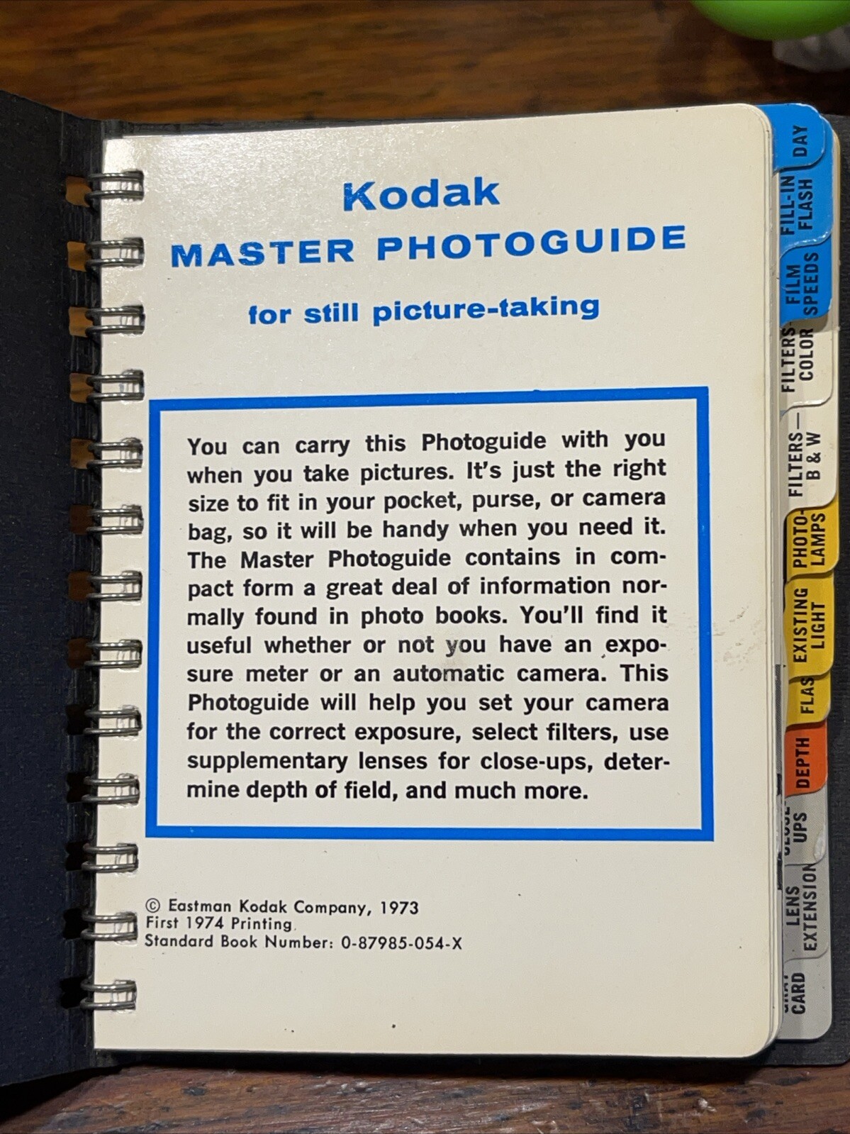 VINTAGE Kodak Master Photoguide Photography Pocket Spiral Bound Book AR-21 1973