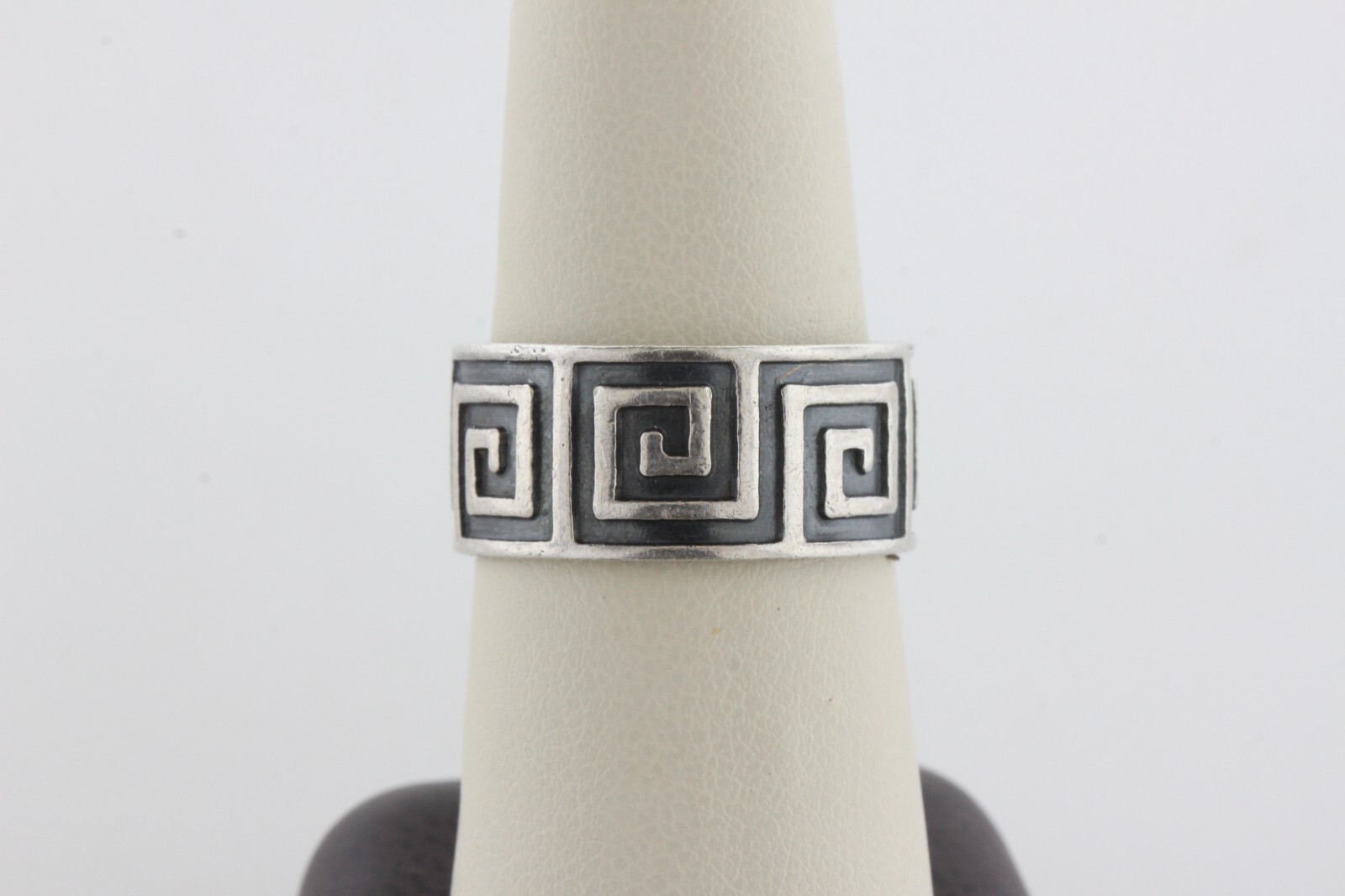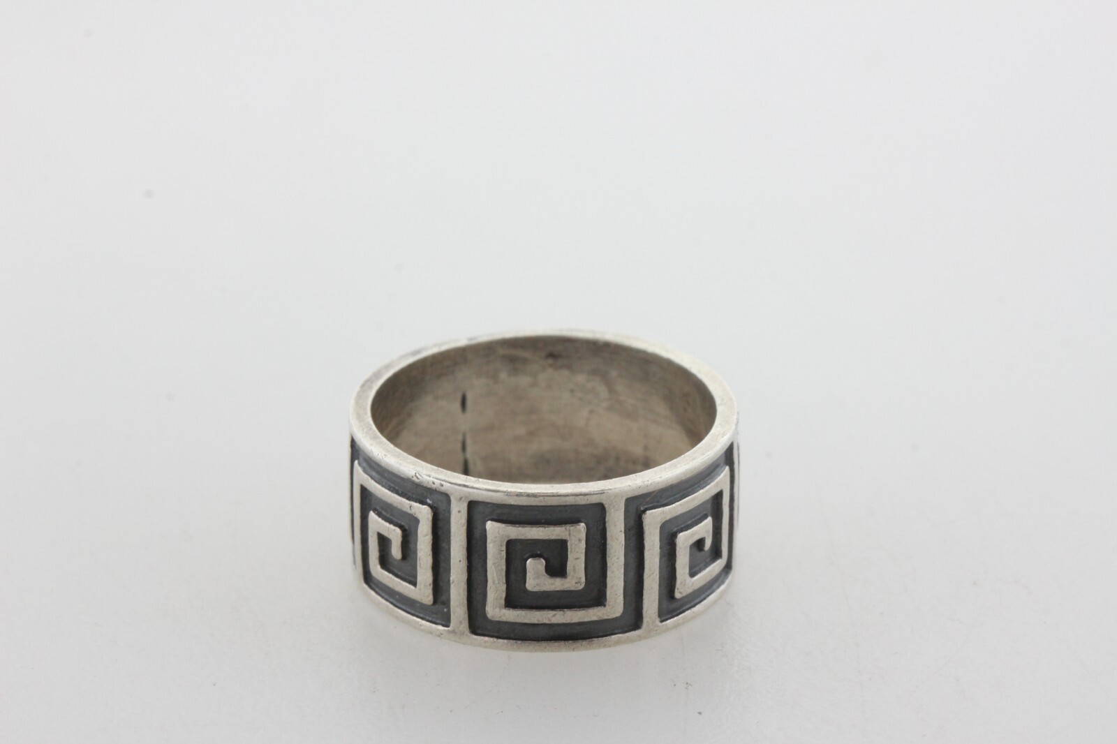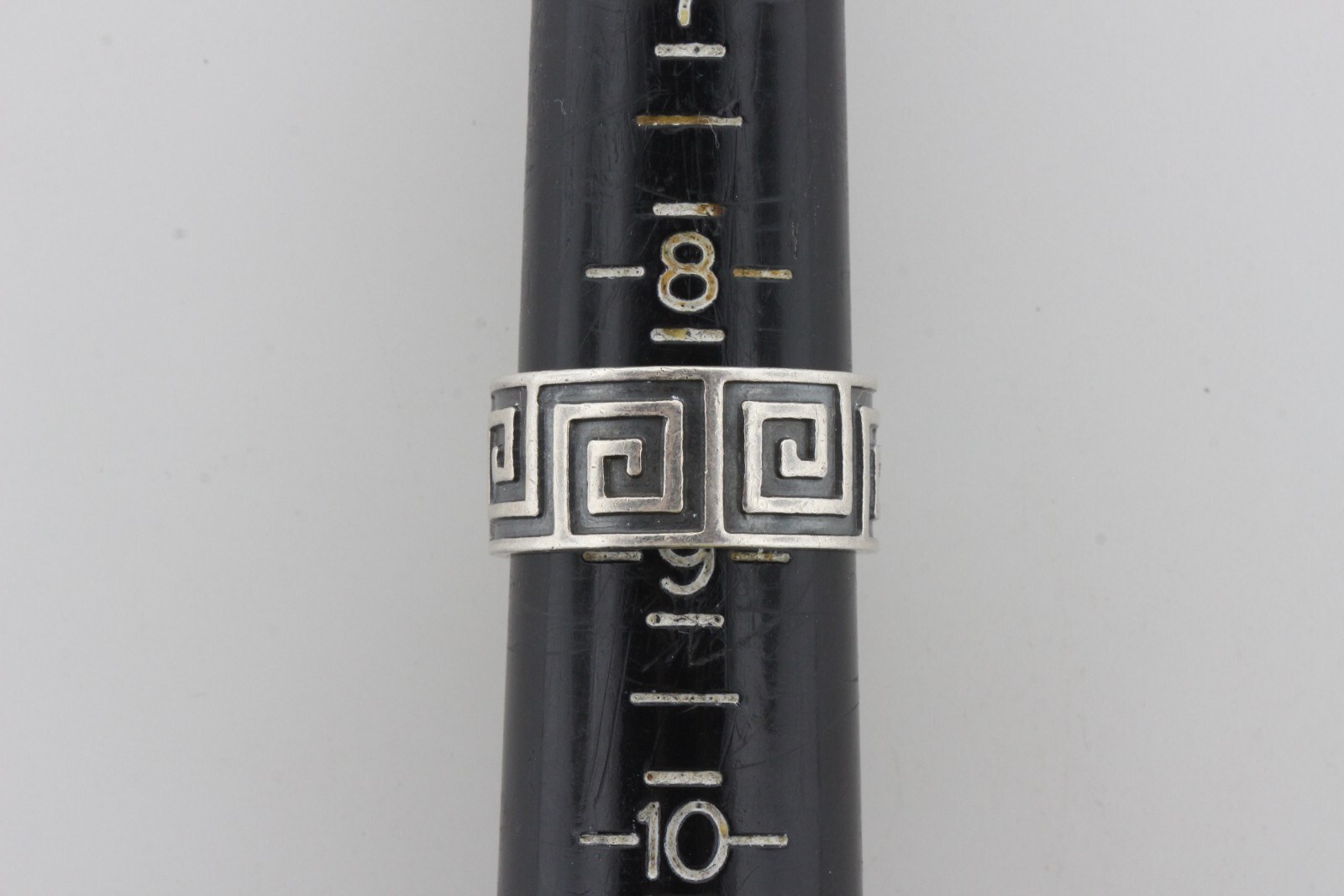 как выглядит Vintage Sterling Silver 925 Greek Key Pattern 9.5MM Thick Band Ring - Size 8.75 фото