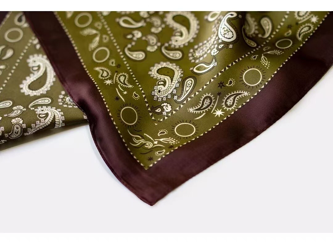 Green Silk Paisley Scarf Men Women Vintage Cowboy Square Cravat Neckerchief
