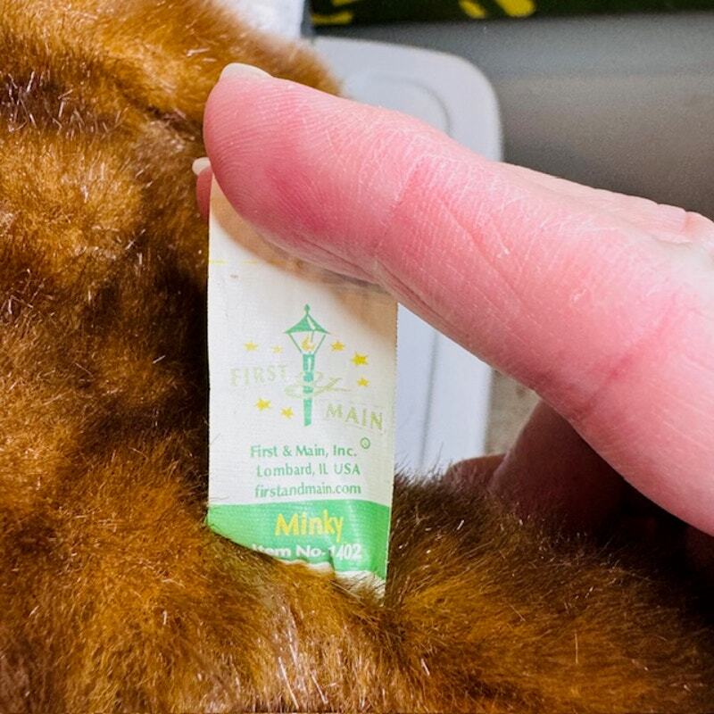 как выглядит Vtg First Main Minky Schminky Plush Teddy Bear Stuffed Animal Fabric Bow 8" фото
