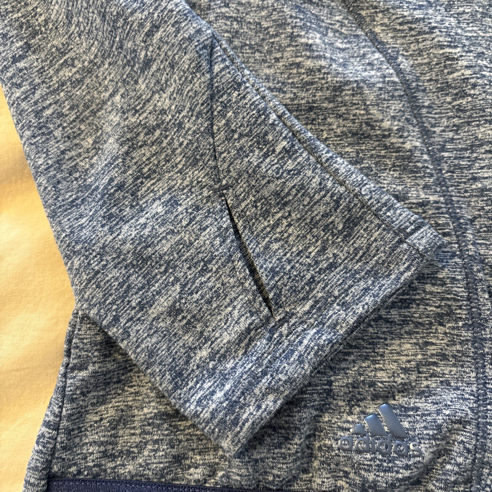 как выглядит Adidas Women s Size M Heathered Navy 1/4 Zip Pullover LS w/thumbholes фото