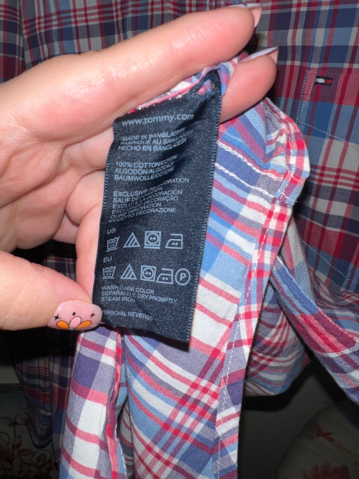 как выглядит Tommy Hilfiger Long Sleeve Button Down Shirt Red White Blue Plaid Mens Size L фото